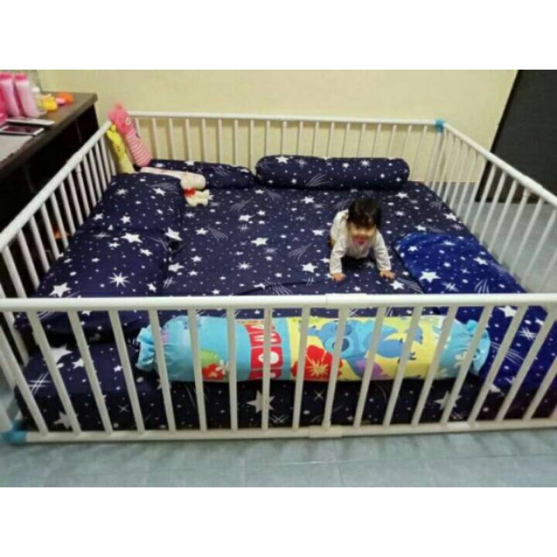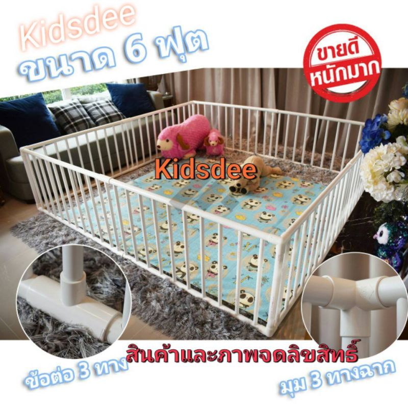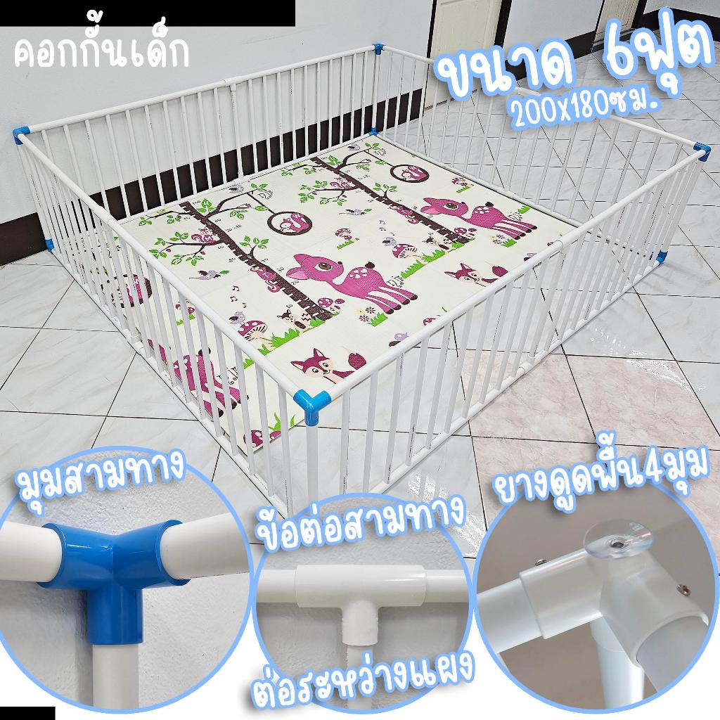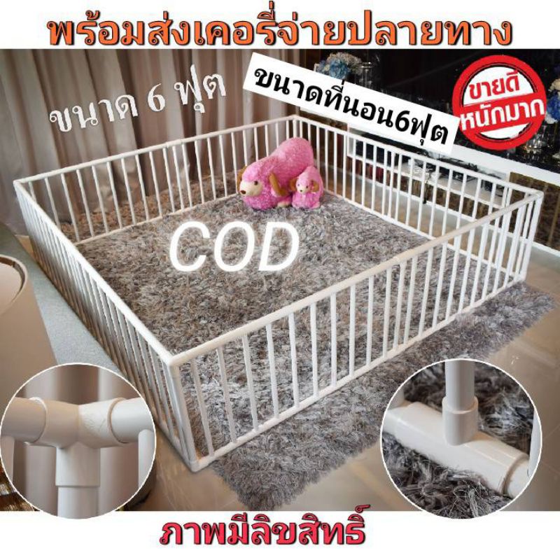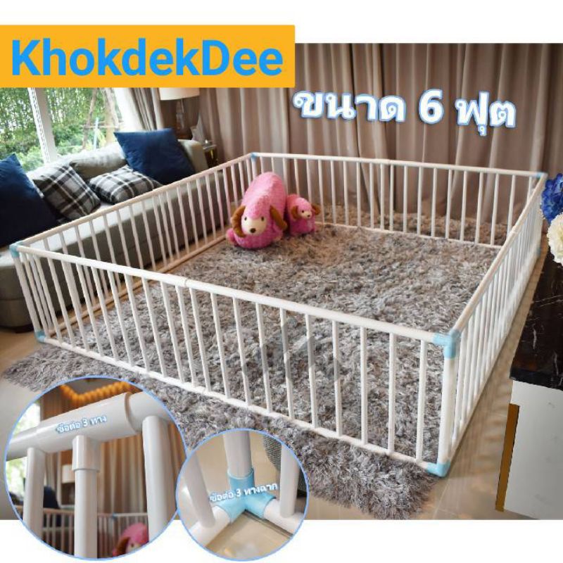 คอกกั้นเด็ก ครอบที่นอน6ฟุต ✅คานหนา8หุนยึดน้อต มุม3ทางฉาก✅ข้อต่อ3ทางแข็งแรงกว่าข้องอแบบบางล้าน%