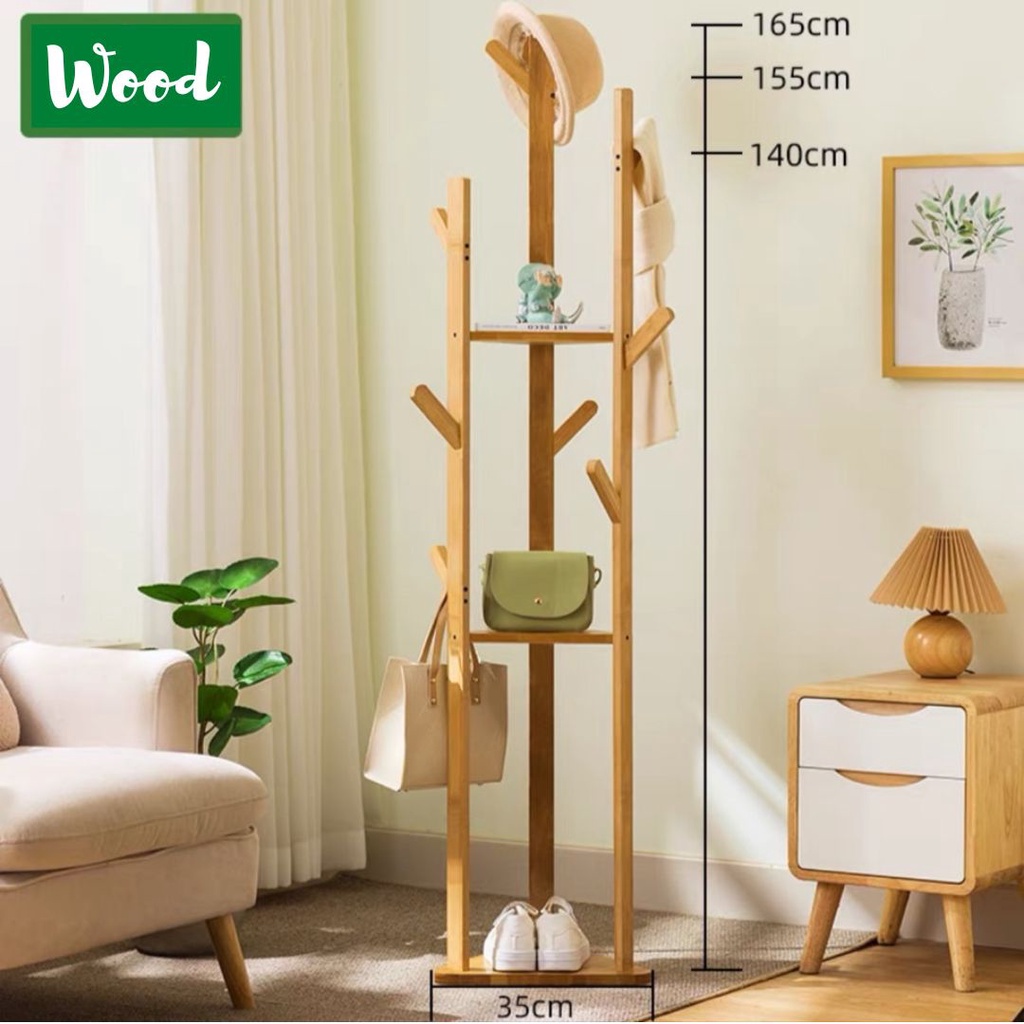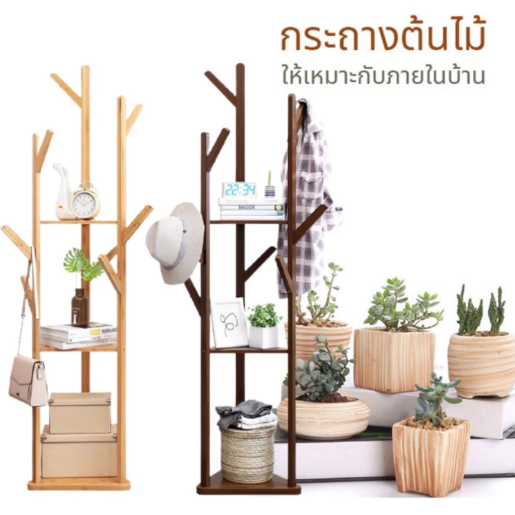🏷️[Home]🔥 ชั้นวางของ ราวไม้แขวนหมวก เสื้อผ้า กระเป๋า 3เเบบงานต้นไผ่ธรรมชาติ พร้อมส่ง