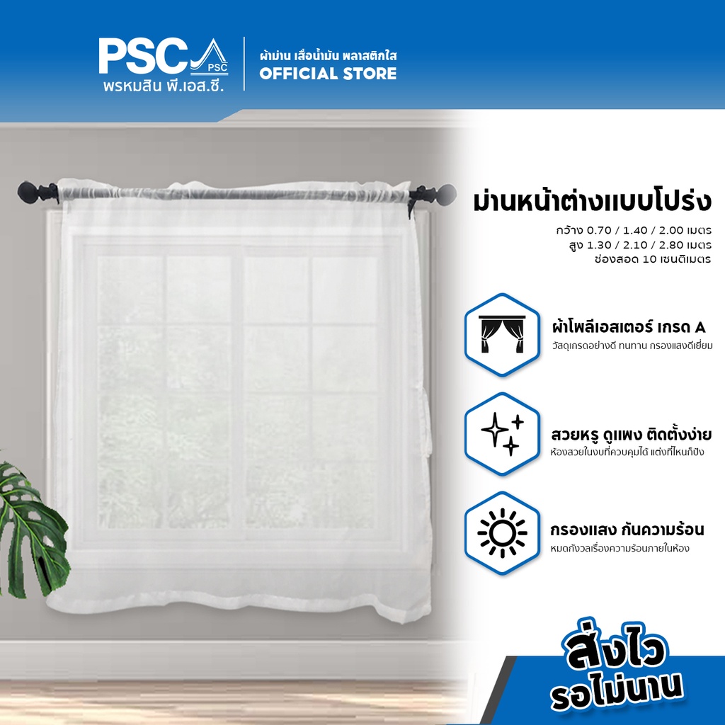 PSC ม่านโปร่ง สอดแป๊บ กว้าง 0.7-2 เมตร สูง 1.3-2.8 เมตร มินิมอล ผ้าฝ้าย โพลีเอสเตอร์ สำเร็จรูป ม่านคาเฟ่
