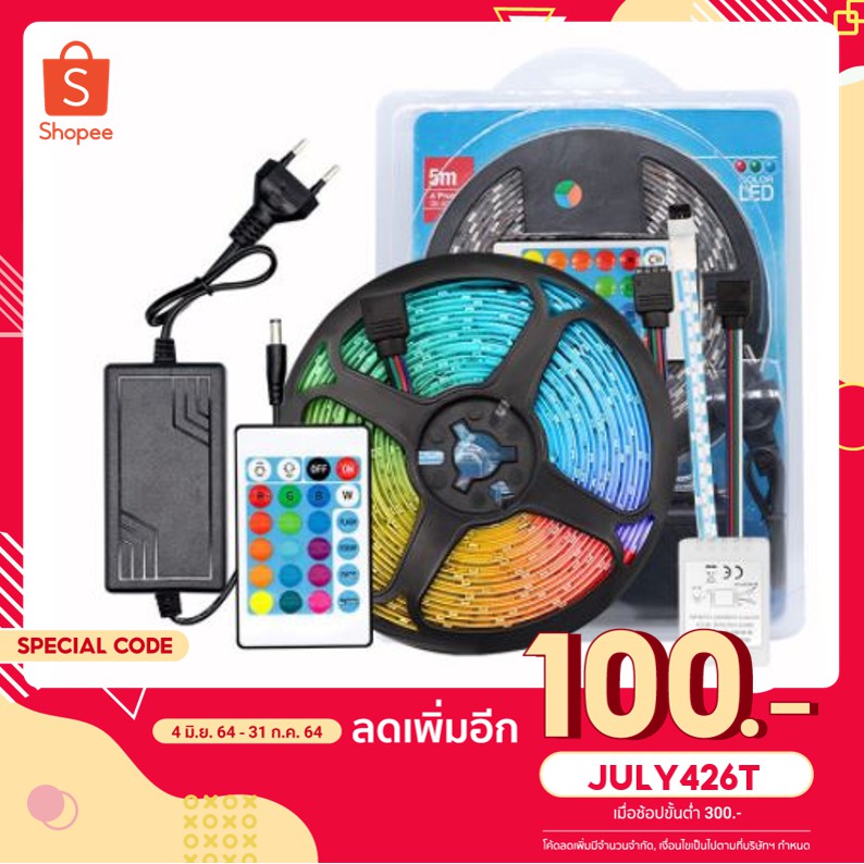 ✨✨.ใส่โค้ด JULY426T ลดเพิ่มอีก15%✨✨ไฟตกแต่งห้อง5050RGB 24ปุ่ม เปลี่ยนสี16สี