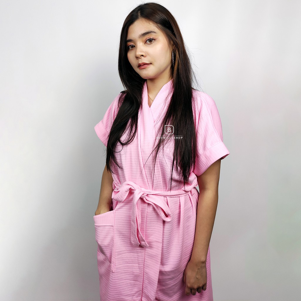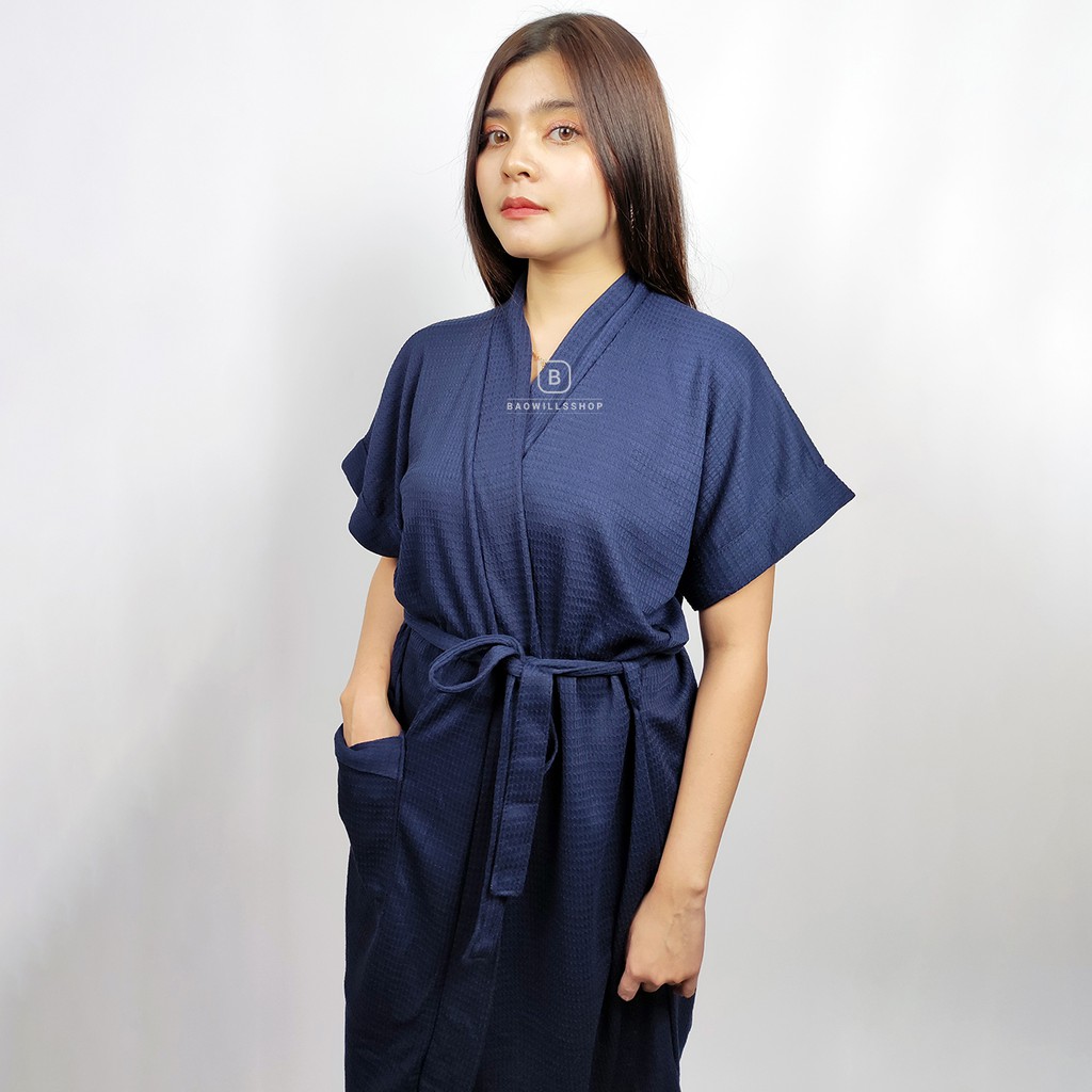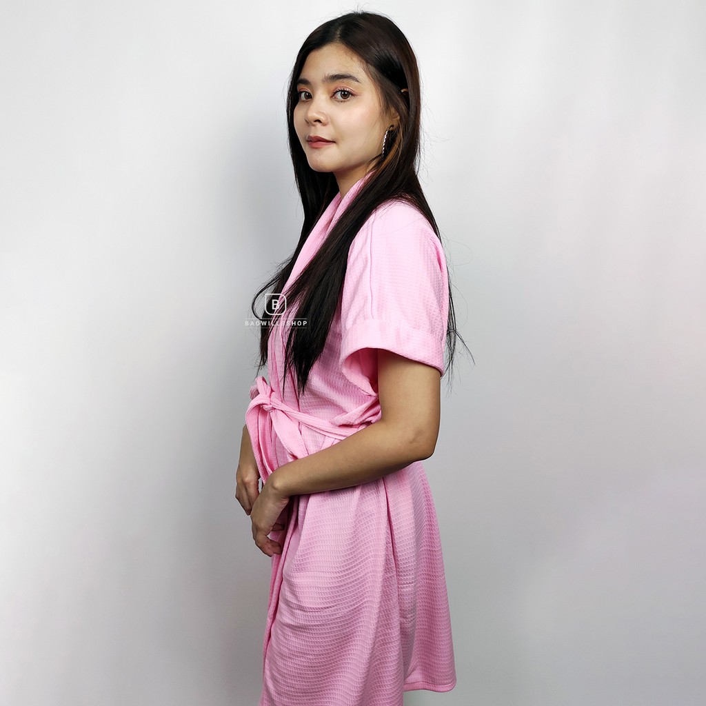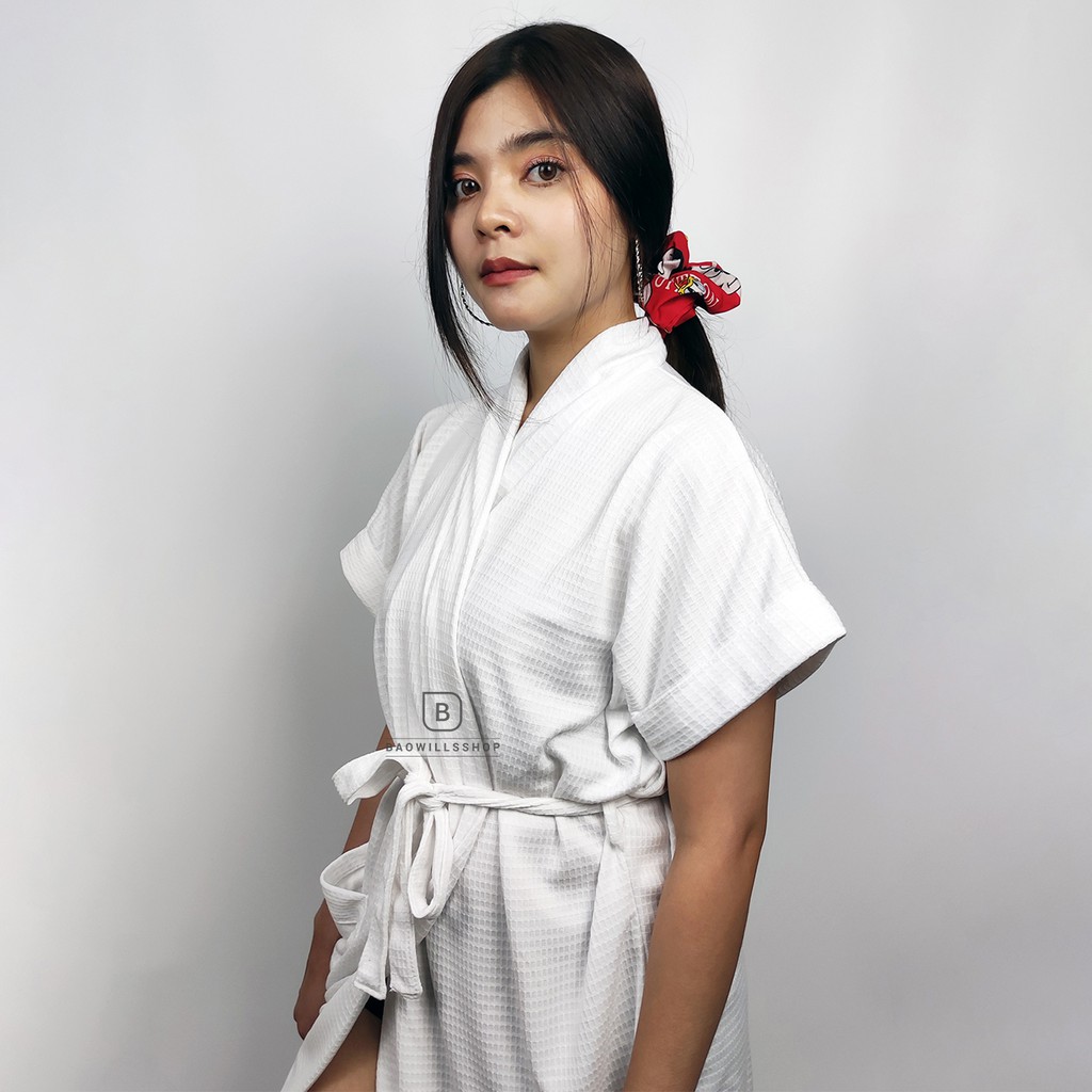 ชุดคลุมอาบน้ำ (กรอกโค้ด WMZUEK ลด 10% ไม่มีขั้นต่ำ) เสื้อคลุมอาบน้ำแขนสั้น ลายวอฟเฟิล ผ้า cotton100% ♡