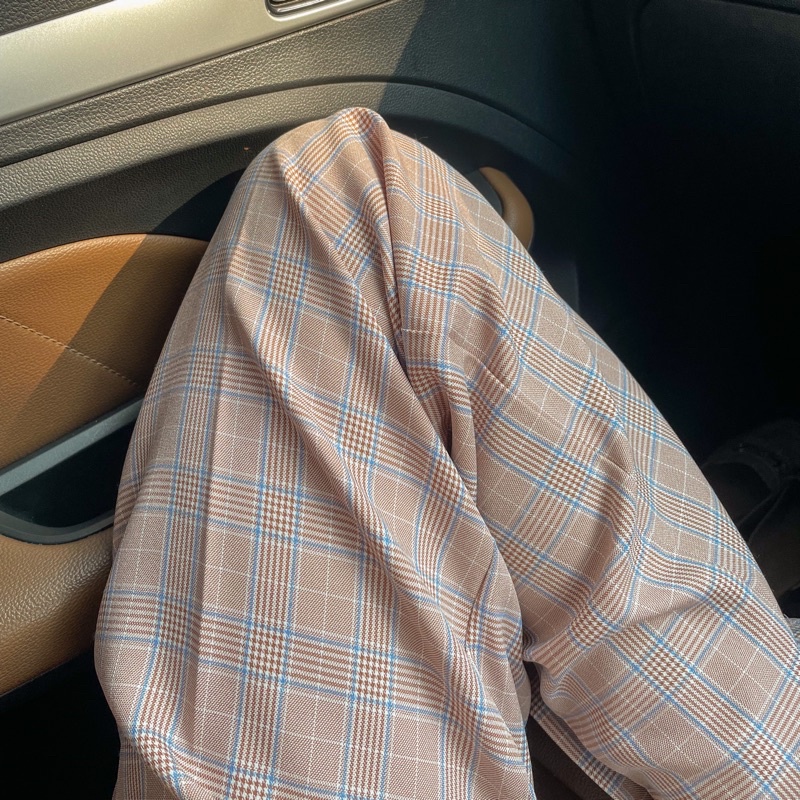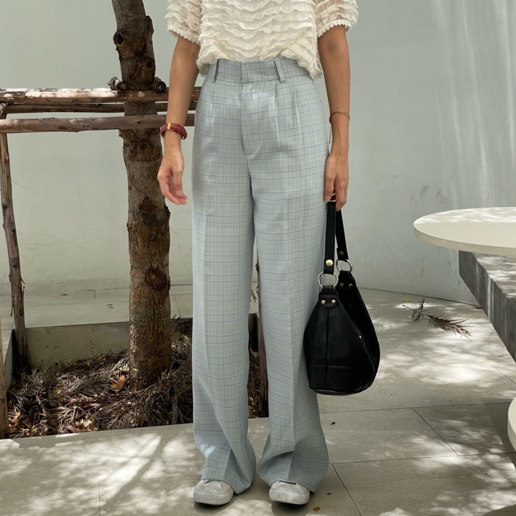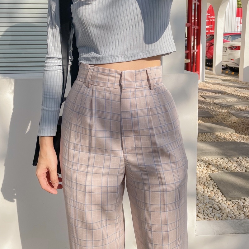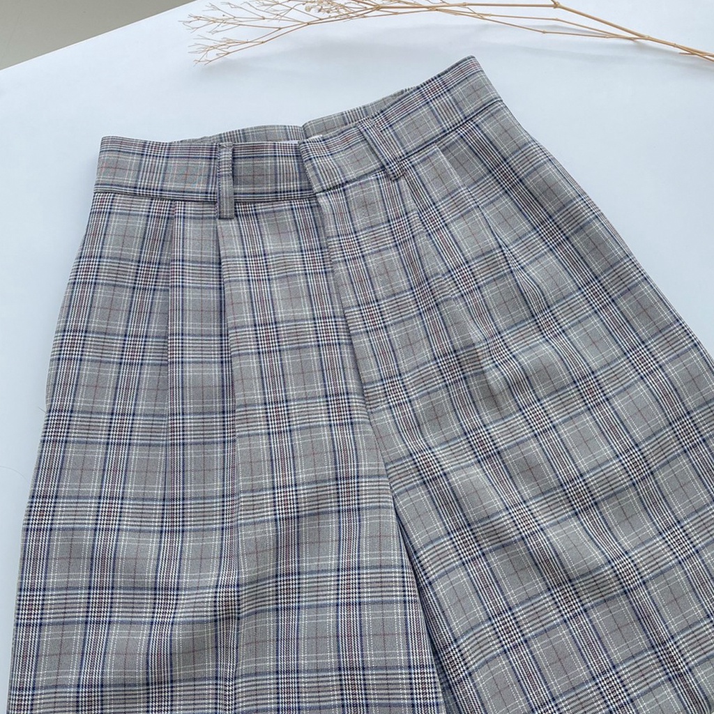 Scotch Pant กางเกงขากระบอกกลางลายสกอต สีออกเทา เนื้อผ้าไม่หนาแต่ไม่บางไม่โปร่งแสง ให้ลุคเรียบง่ายแต่สวย