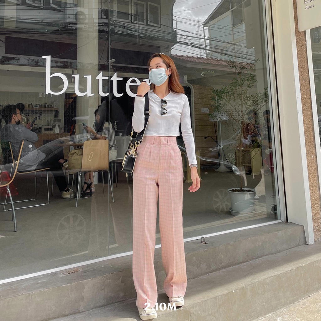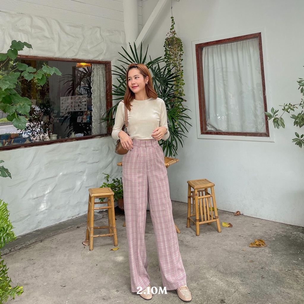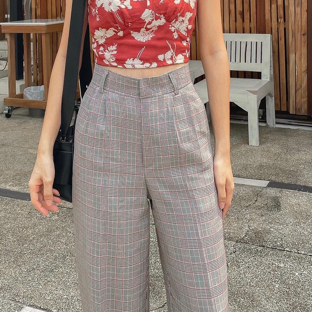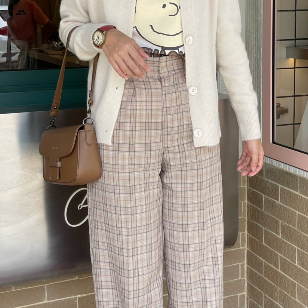 Scotch Pant กางเกงขากระบอกกลางลายสกอต สีออกเทา เนื้อผ้าไม่หนาแต่ไม่บางไม่โปร่งแสง ให้ลุคเรียบง่ายแต่สวย