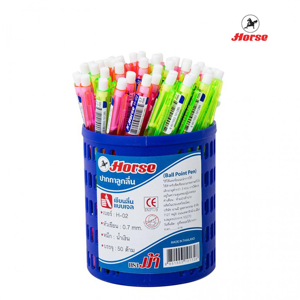 HORSE ตราม้า ปากกาลูกลื่น 0.7มม. H-02 - สีน้ำเงิน (แพ็คX50ด้าม)