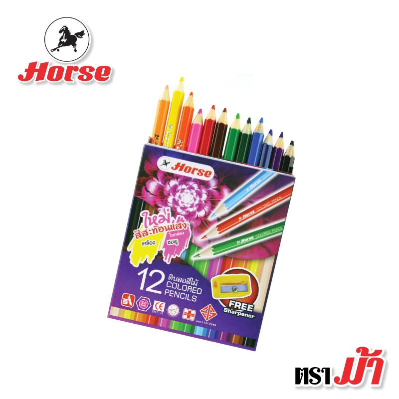 HORSE ตราม้า ดินสอสีไม้สั้น 12สี+กบเหลา รุ่นใหม่ (1x1)