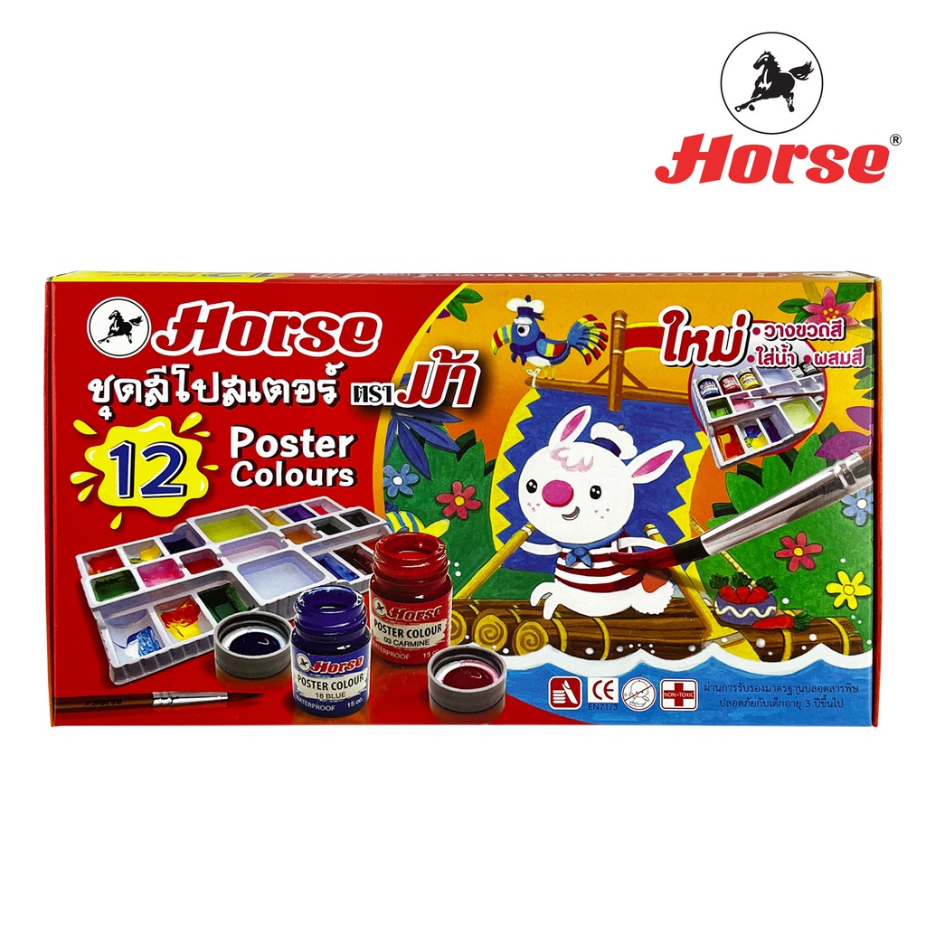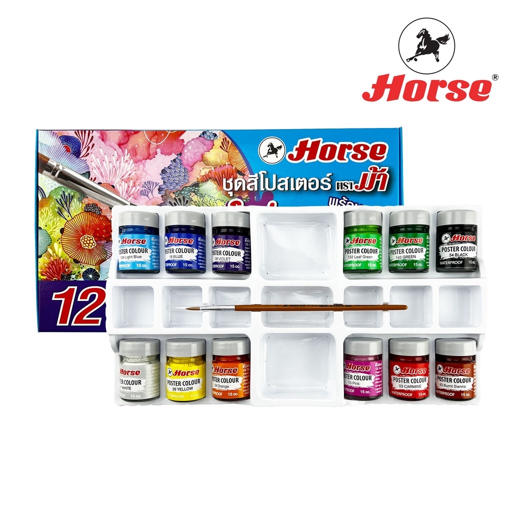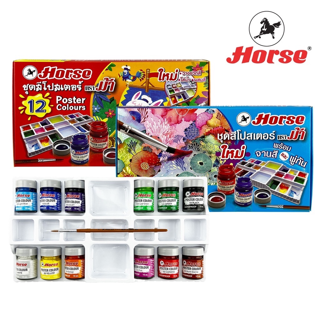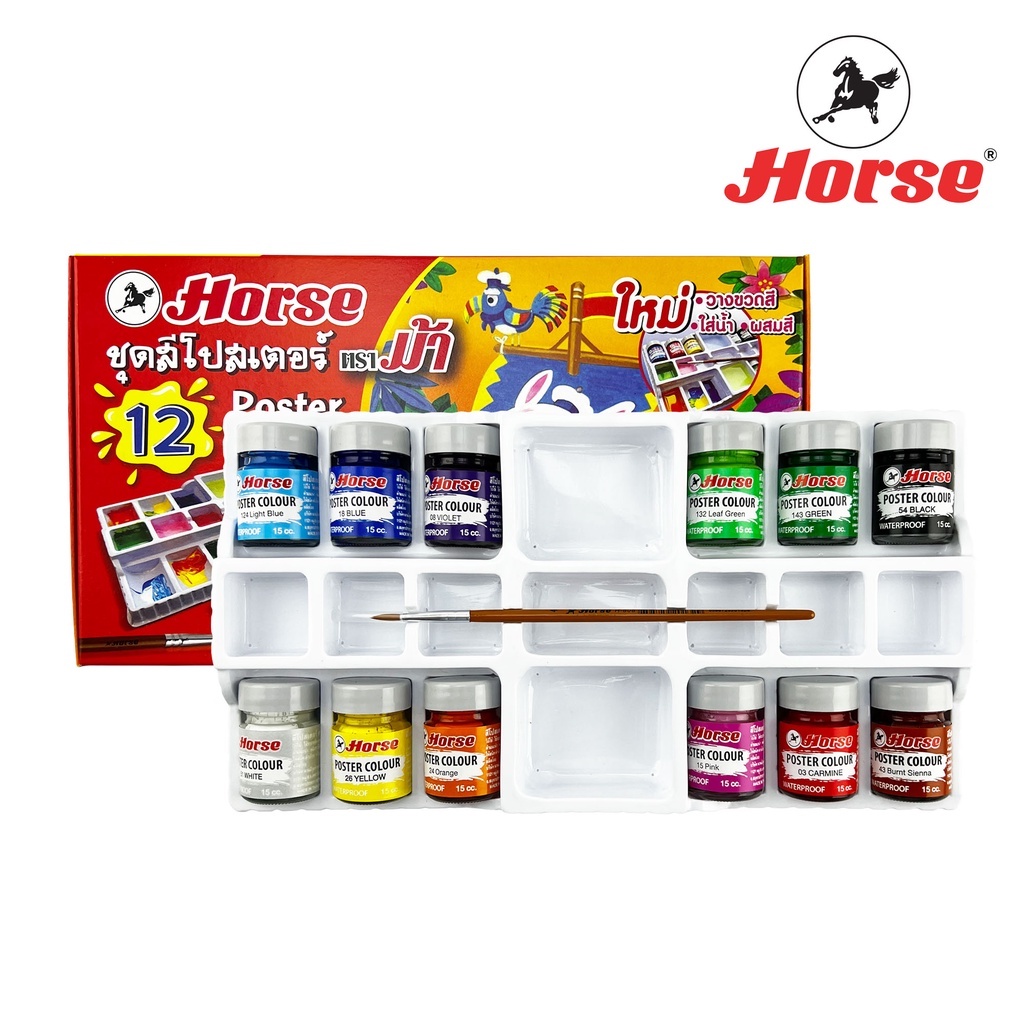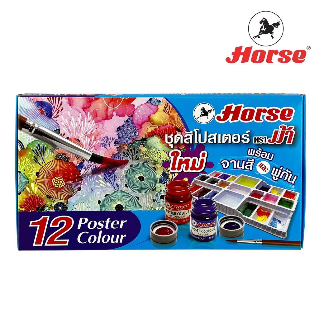 Horse (ตราม้า) สีโปสเตอร์ ชุด 12สี ตราม้า + พู่กัน จำนวน 1 กล่อง/ชุด จำนวน 1 ชุด