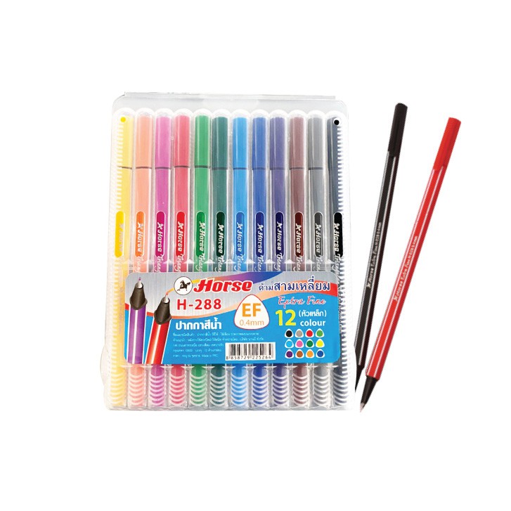 HORSE ปากกาสีน้ำชุด 12สี ตราม้าด้ามเหลี่ยม H-288 จำนวน 1 ชุด