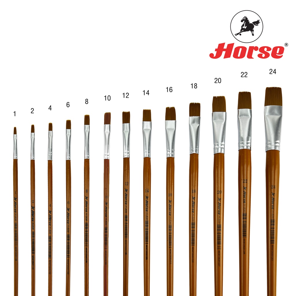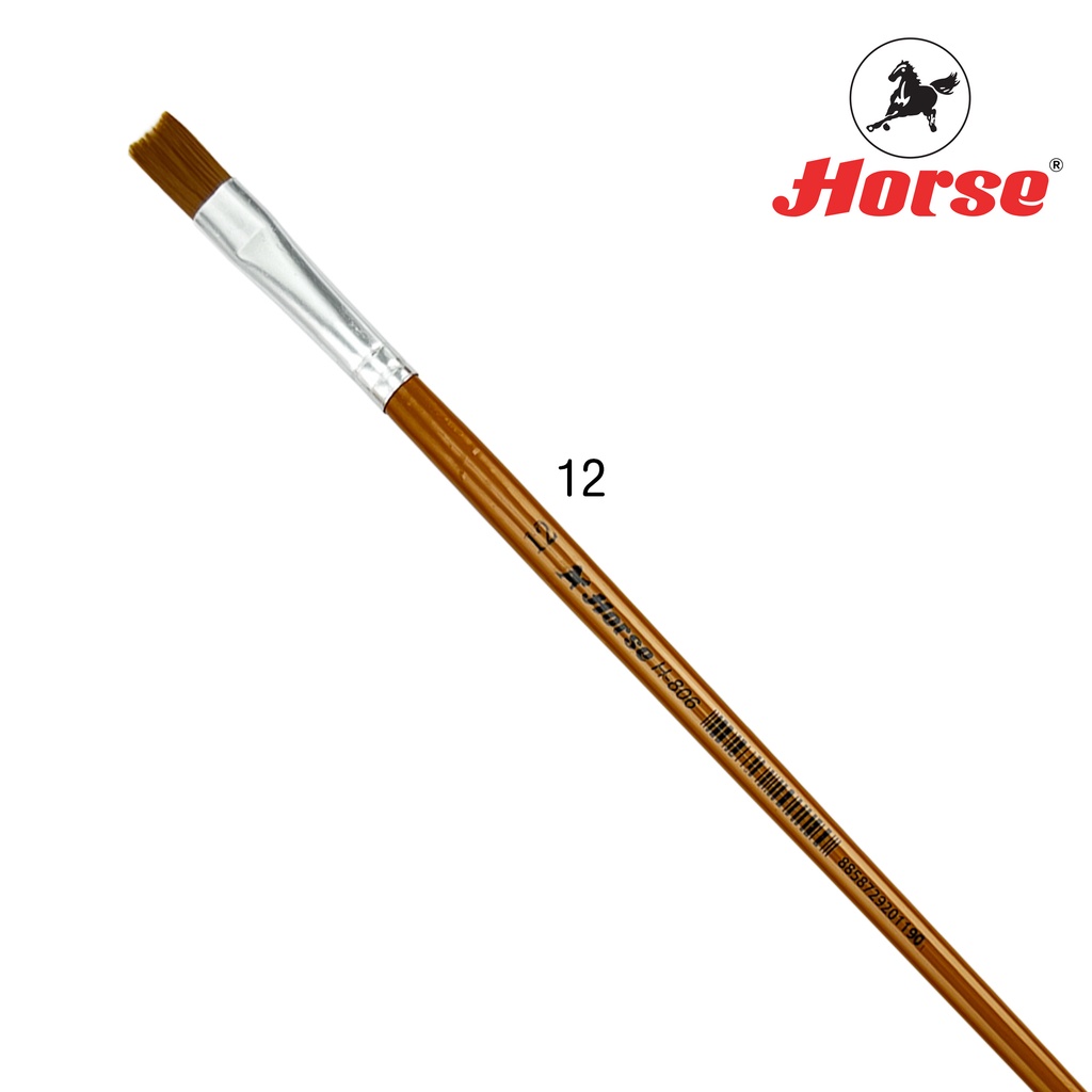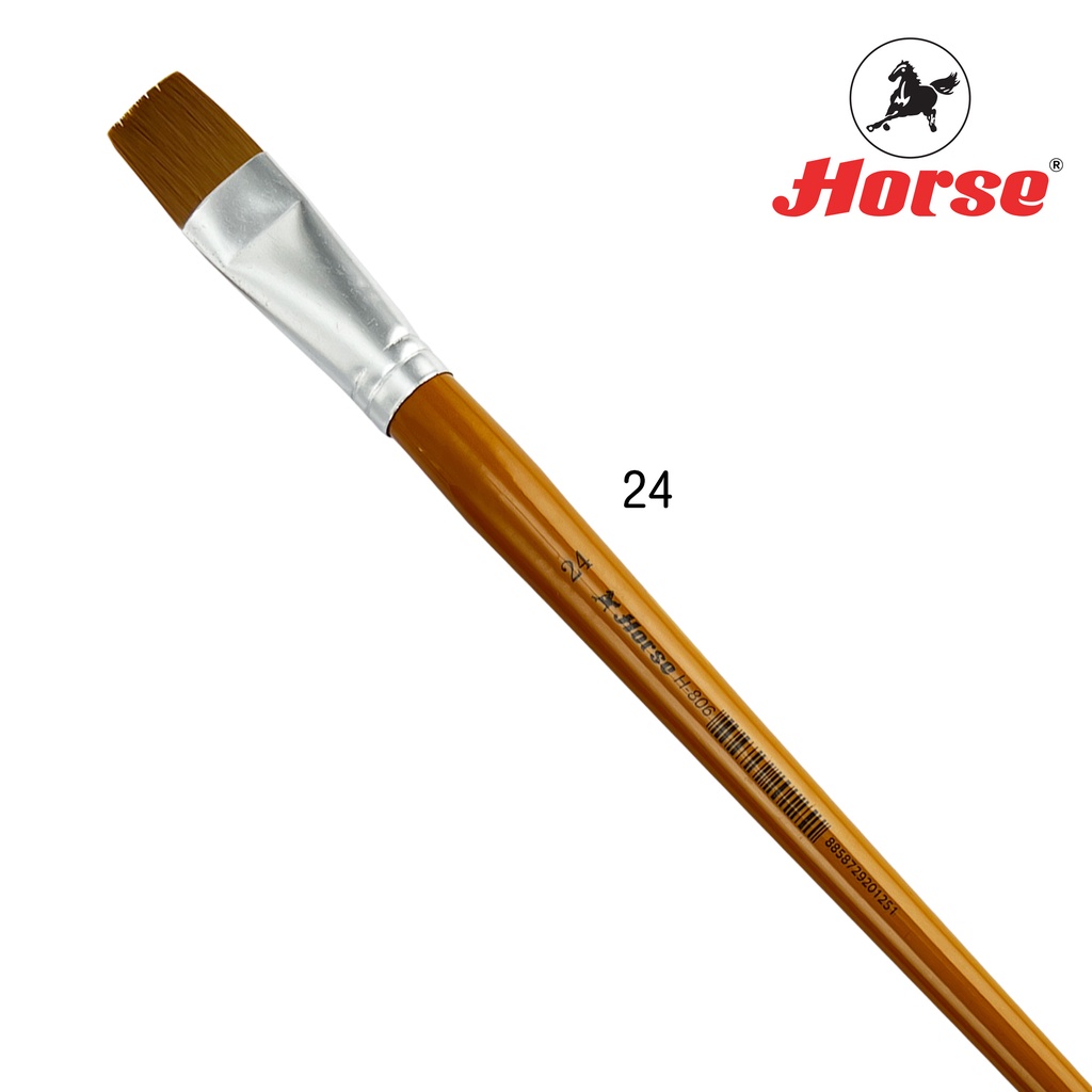 HORSE ตราม้า พู่กันสีอะครีลิคชนิดแบน H-806 เบอร์ 1 - 24 จำนวน 1อัน