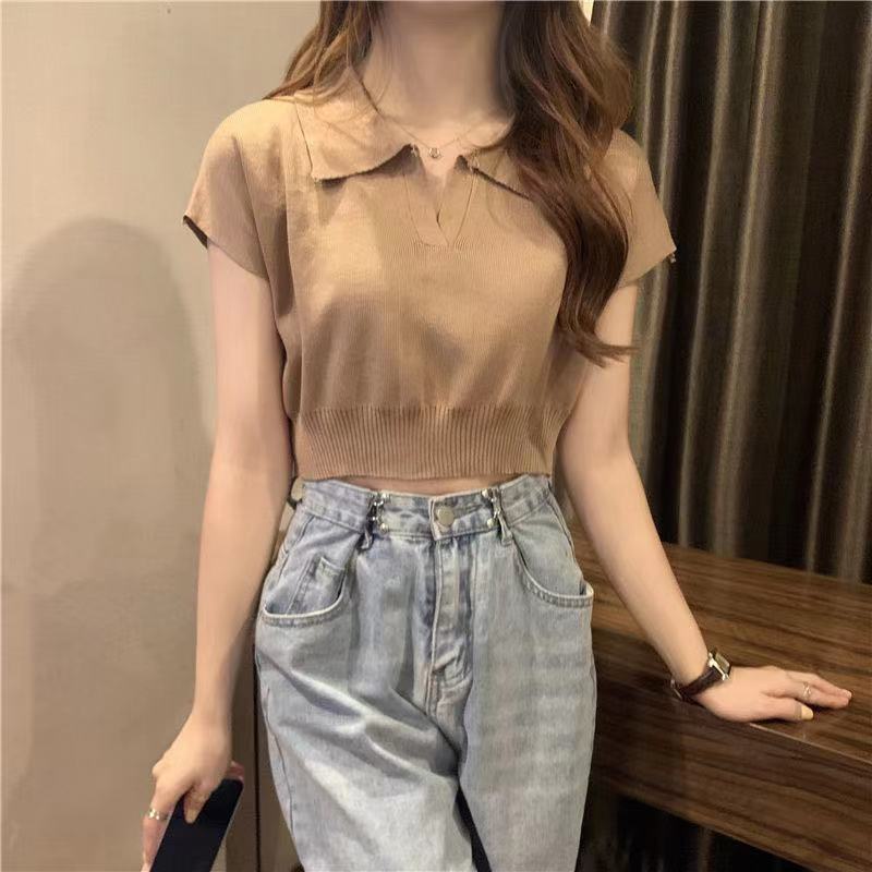 💕Miki-Shop*😍พร้อมส่งเสื้อคอปกแขนสั้น เสื้อครอปไหมพรม ของแท้ เนื้อผ้าเกรดดี แฟชั่นสไตล์เกาหลีBZ238*