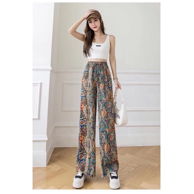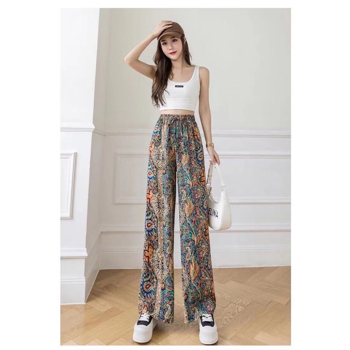 *Miki-Shopพร้อมส่งกางเกงขายาวผ้าลื่น เอวยางยืด ผ้านิ่มใส่สบายดีมากจ้ะGF*KKJ