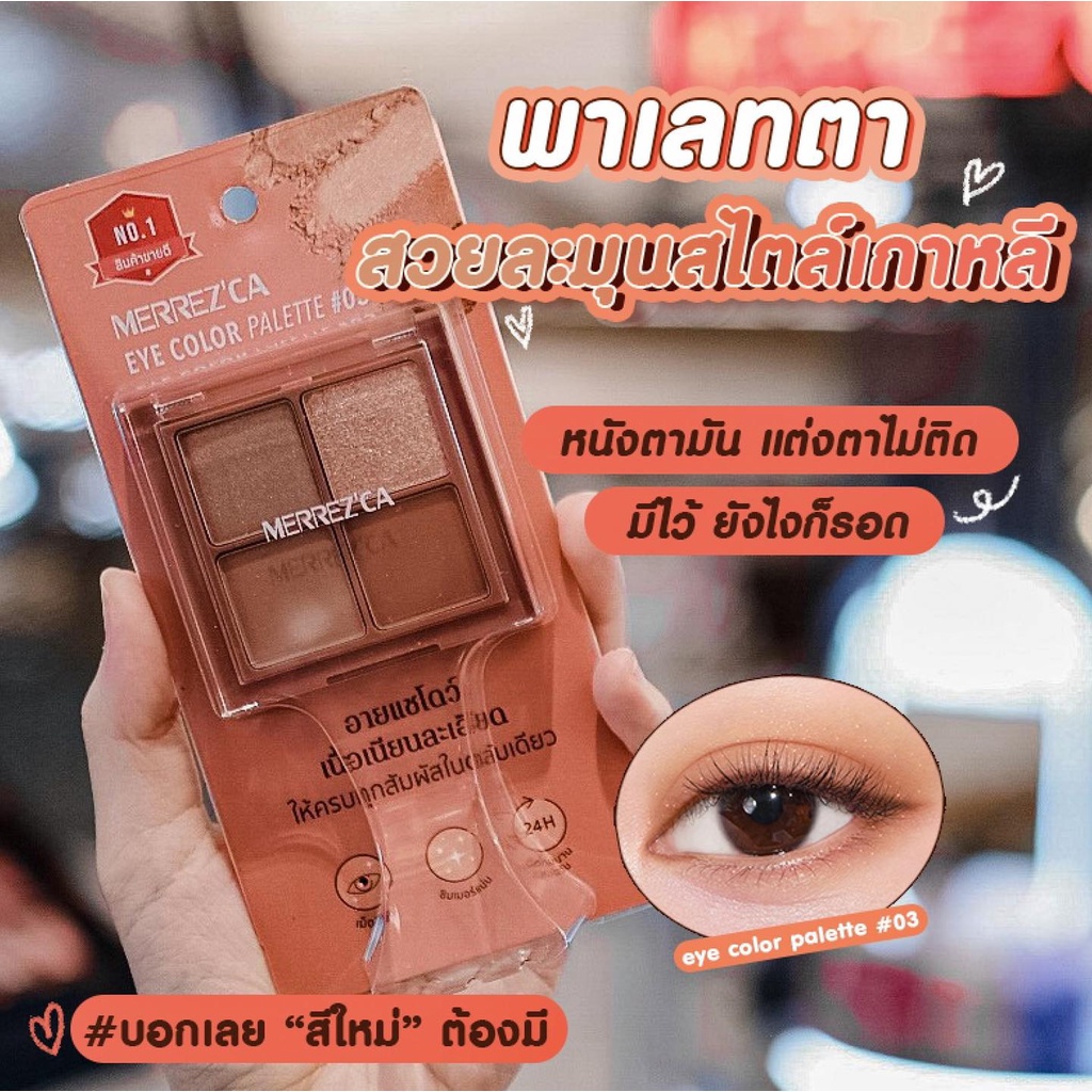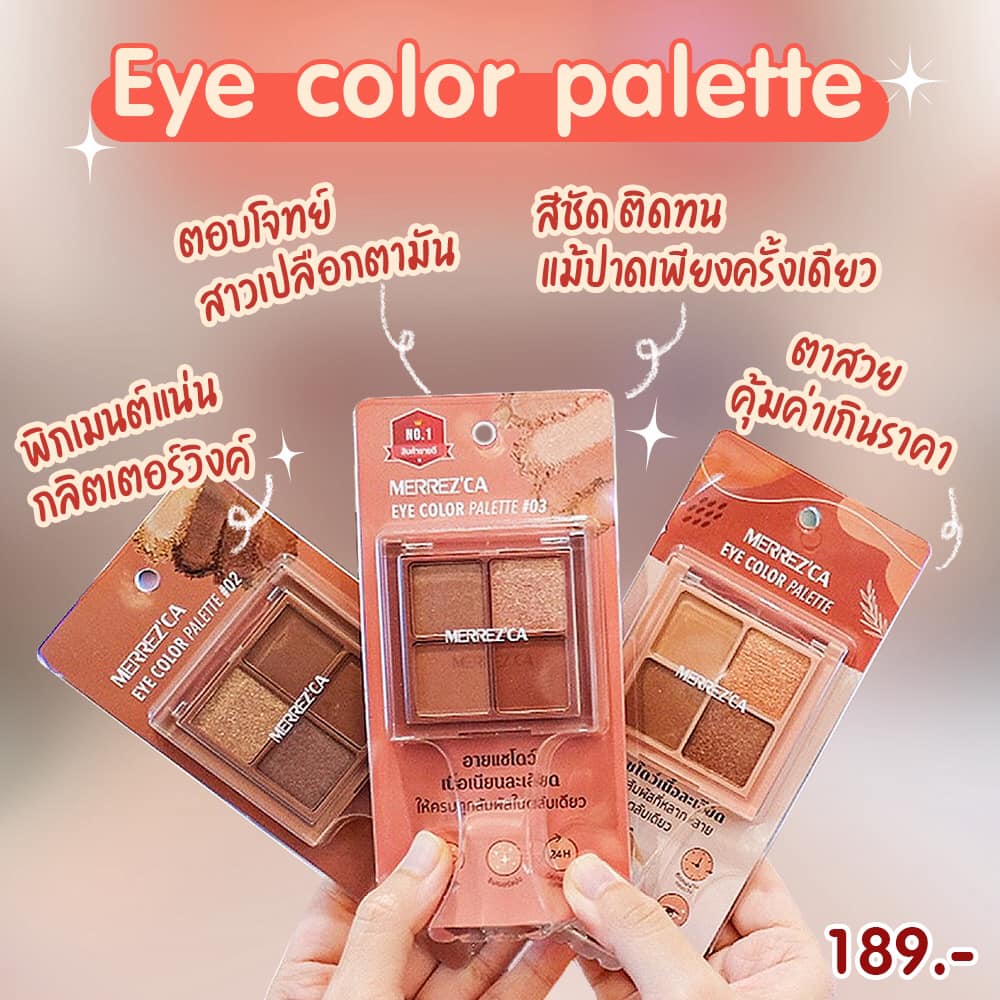 NEW!! พาเลท 4 ช่อง MERREZCA Eye Color palette มีทั้งเนื้อแมท & เนื้อชิมเมอร์ 4* 1.8 g. เนื้อแน่น สีชัด ติดทน อายแชโดว์