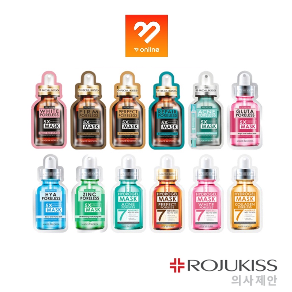 Rojukiss Premium 5X Intensive Zinc / Hydrogel Collagen Mask โรจูคิส แผ่นมาส์กหน้า 5 เอ็กซ์ มาส์กหน้า ไฮโดรเจล