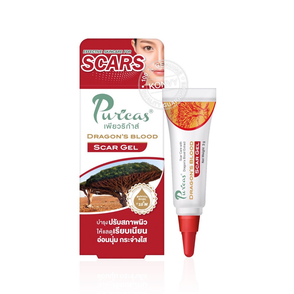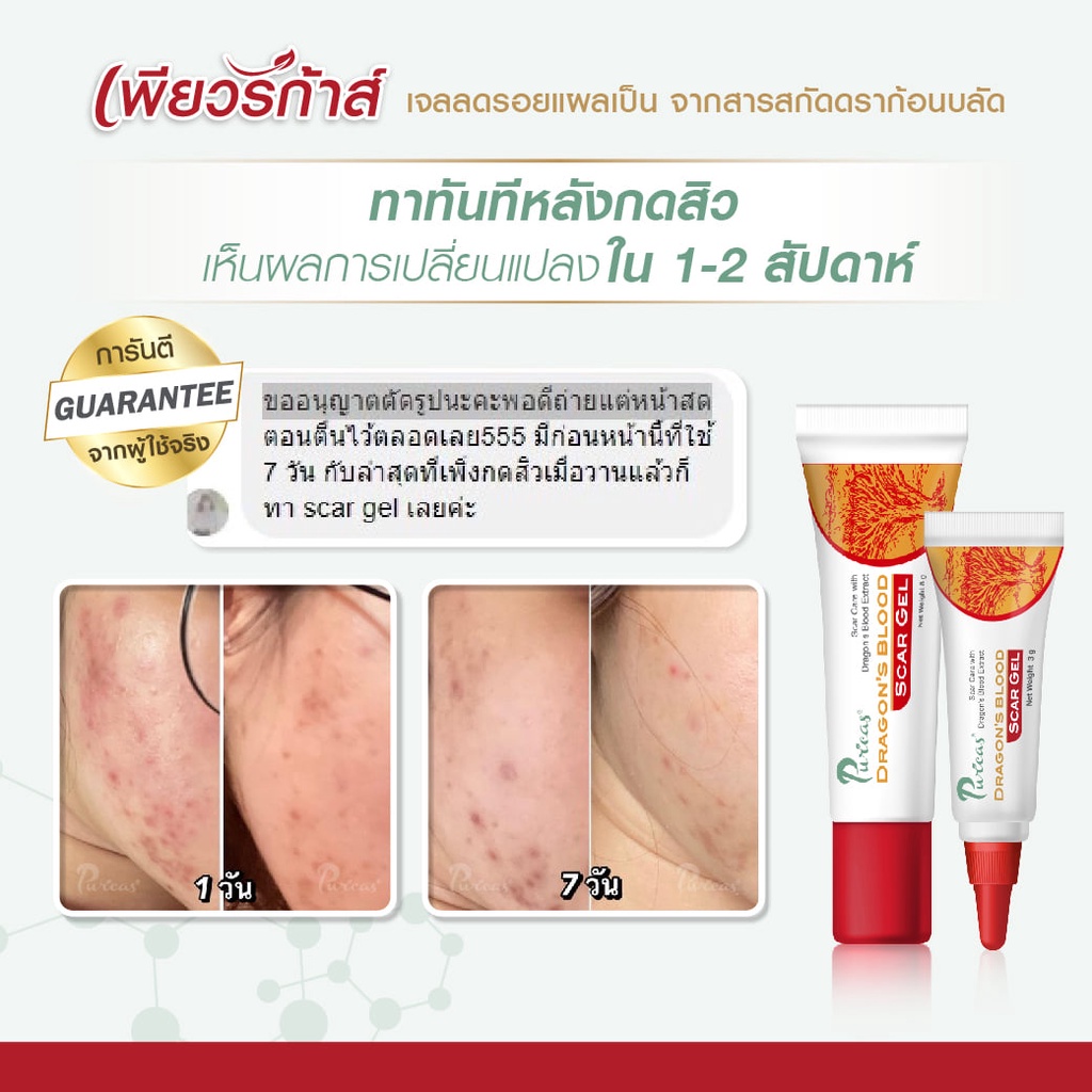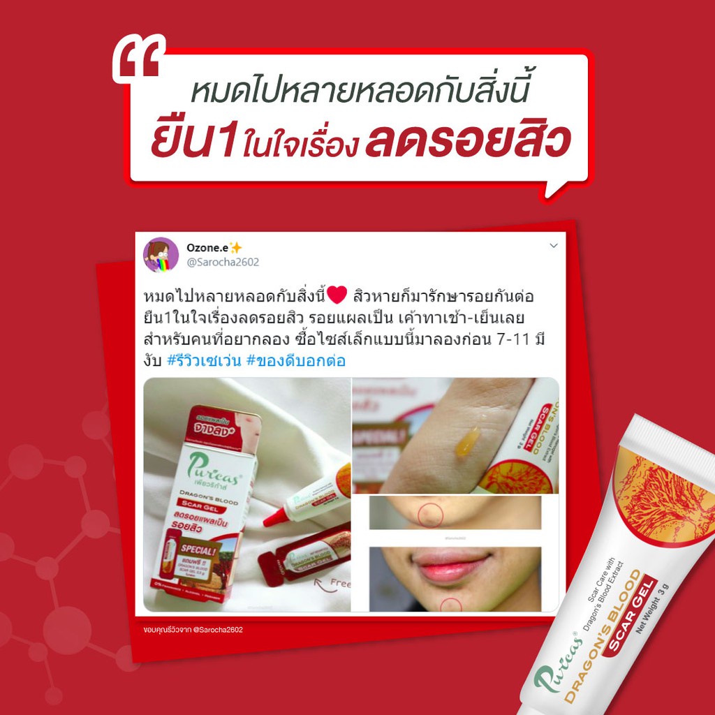 ของแท้!!รับจากบริษัท!ไม่มั่นใจผ่านเลย Puricas Dragon Blood Scar Gel 3g. เพียวริก้าส์ ดราก้อนบลัด เจลแต้มสิว รักษาแผลเป็น