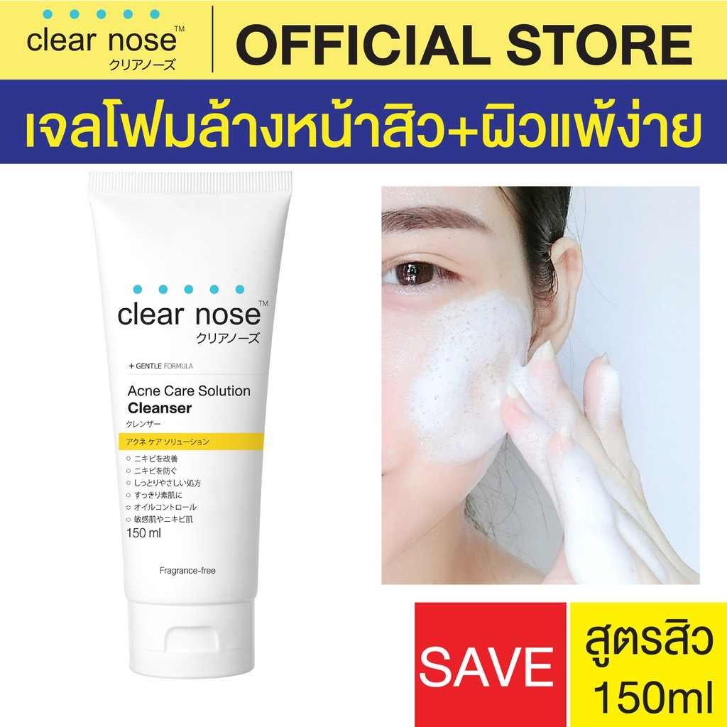 โฟมล้างหน้า Clear nose Acne Care / Bright Micro Solution Cleanser / Vitamin C Complex 150 ml. สูตรอ่อนโยน ลดสิว