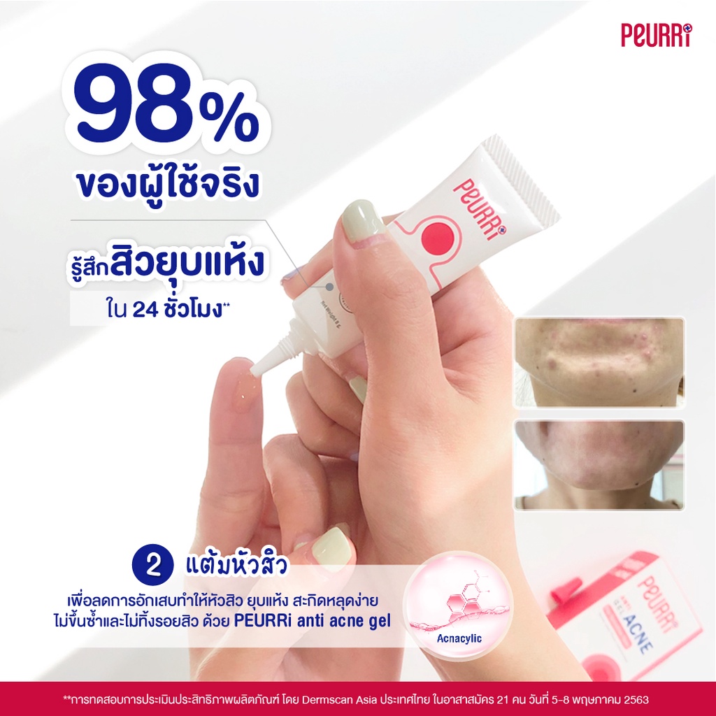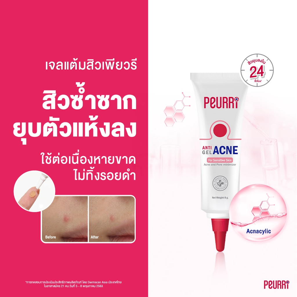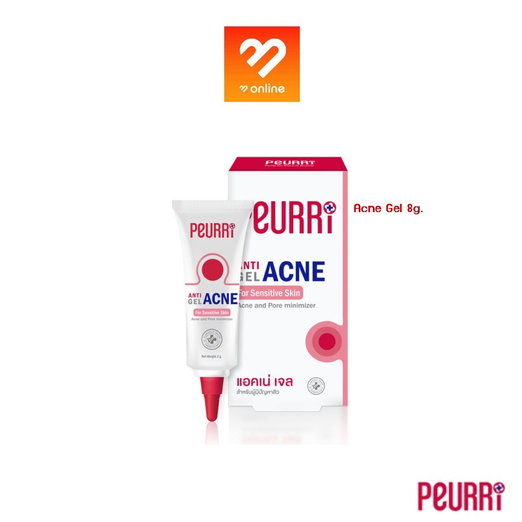 PEURRi Anti Acne Gel มี 2 ขนาด 3 / 8 g. เพียวรี แรพิท ออล แอคเน่ เคลียร์เจล แอคเน่ เจล เจลแต้มสิว