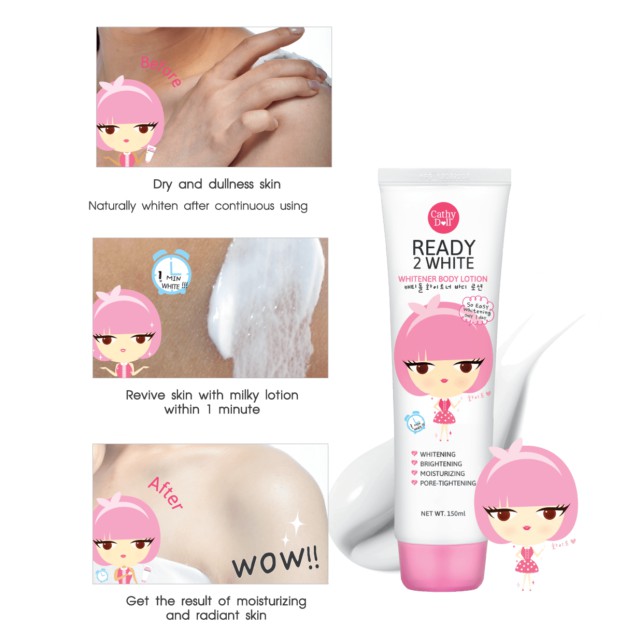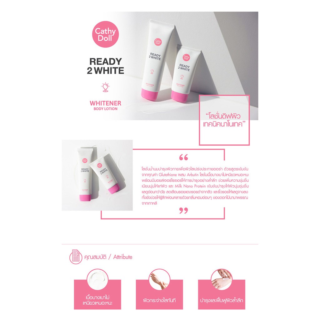 Cathy doll ready 2 white body lotion โลชั่น เคที่ดอล บีบี ไวท์เทนนิ่ง บอดี้ โลชั่น ครีม พริตตี้ 150มล