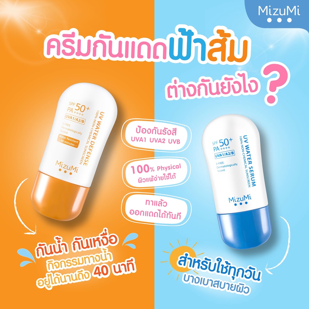 ลด50% 1 ชิ้น ครีมกันแดด 40g. MizuMi UV Water Serum/Defense Pro/Water Active Sport เนื้อเบาสบาย ไม่เหนอะ กันแดดผิวแพ้ง่าย