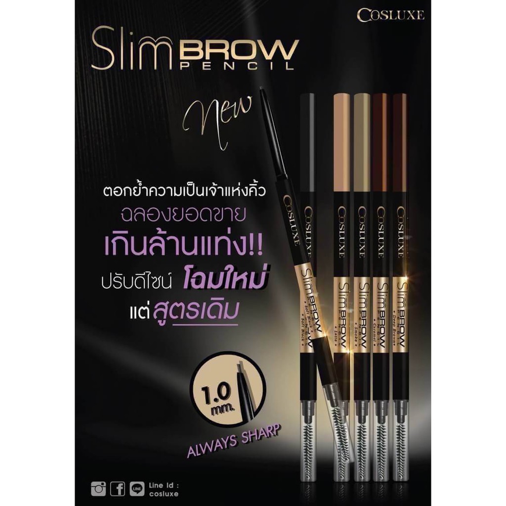 ส่ง!! แท้!! ลอตใหม่!! Cosluxe slimbrow pencil เขียนคิ้ว คอสลุค สลิม cosluxe ดินสอเขียนคิ้ว กันน้ำ