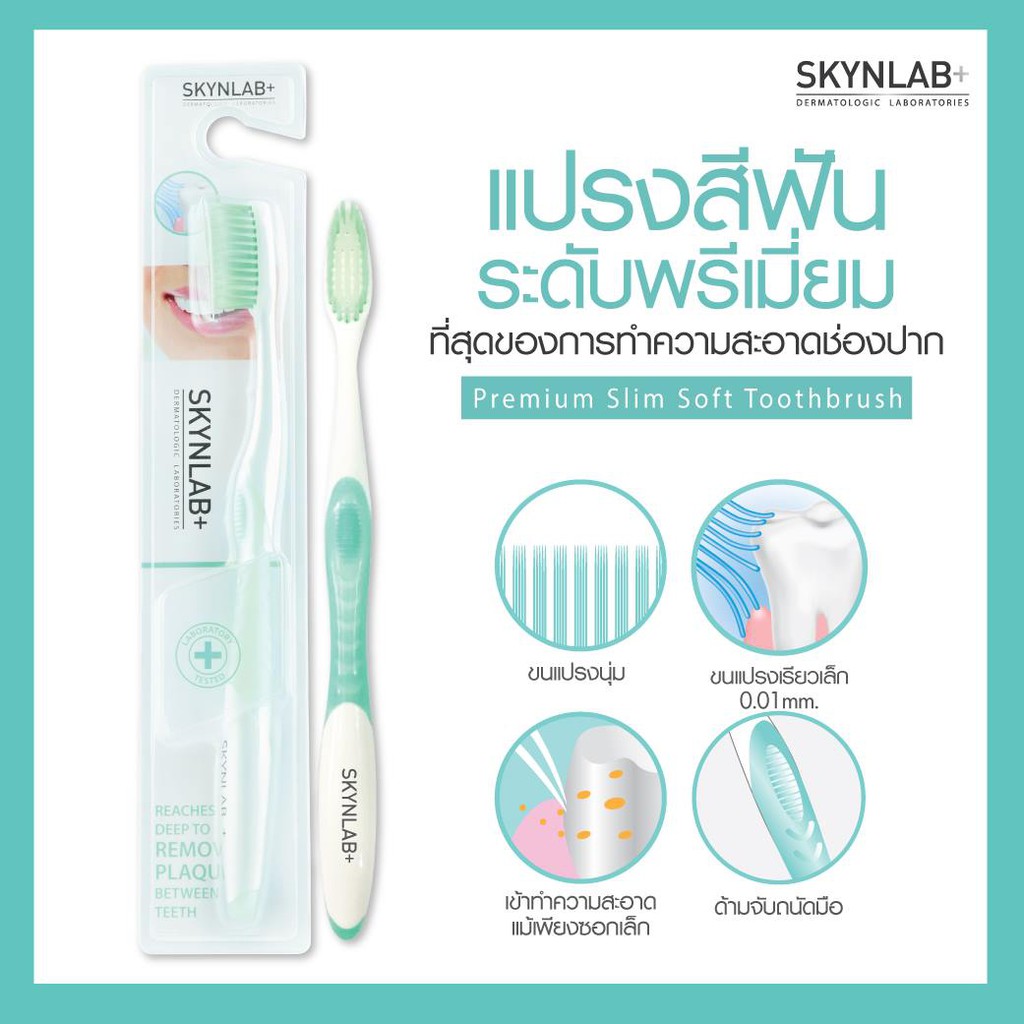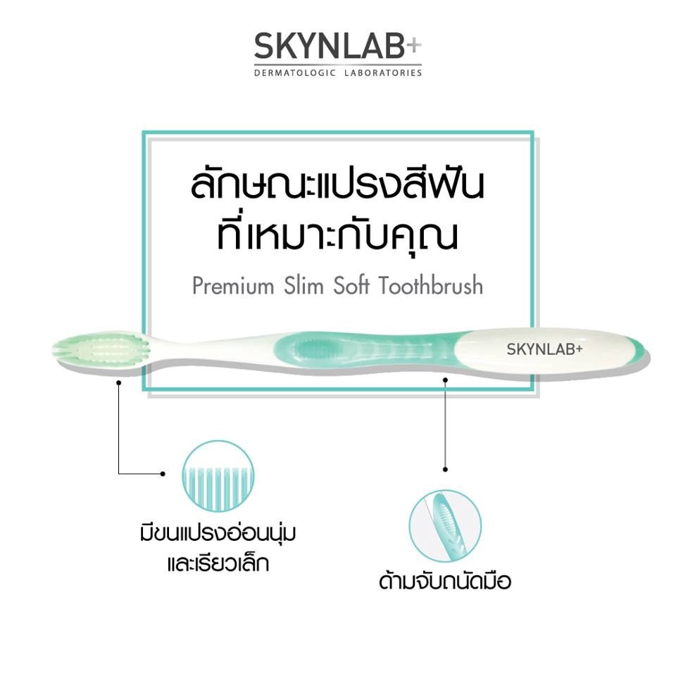 (แปรง+ยาสีฟัน) Skynlab PremiumSlimSoftToothbrush สกินแล็บ แปรงสีฟัน พรีเมี่ยม สลิมซอฟท์ บลูทรี ปลายเรียวแหลม