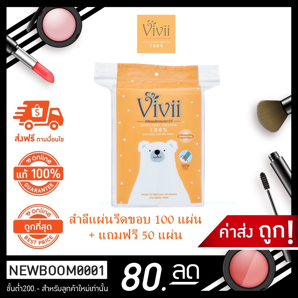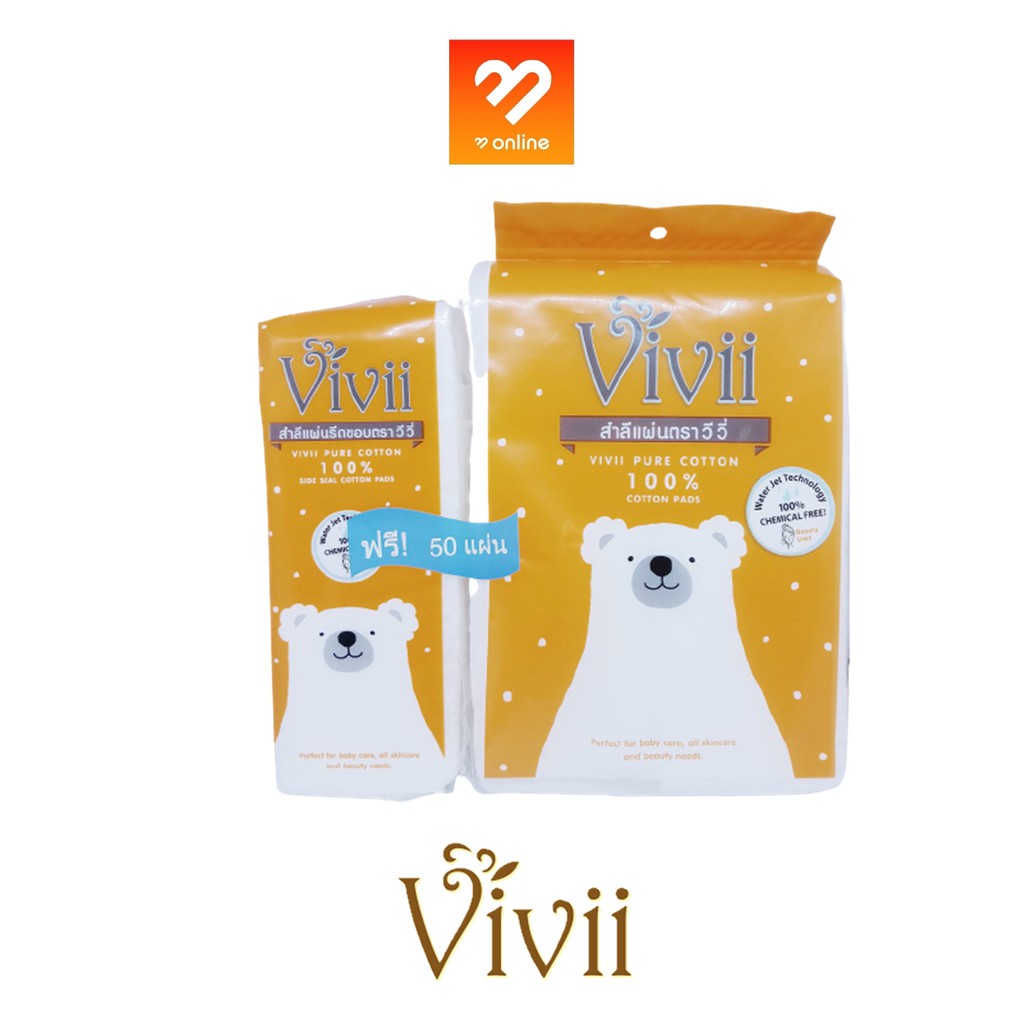 Vivii สำลีแผ่นรีดขอบ 100 แผ่น ฟรี 50 แผ่น สำลี ใช้ทำความสะอาดผิวหน้า เช็ดเครื่องสำอาง
