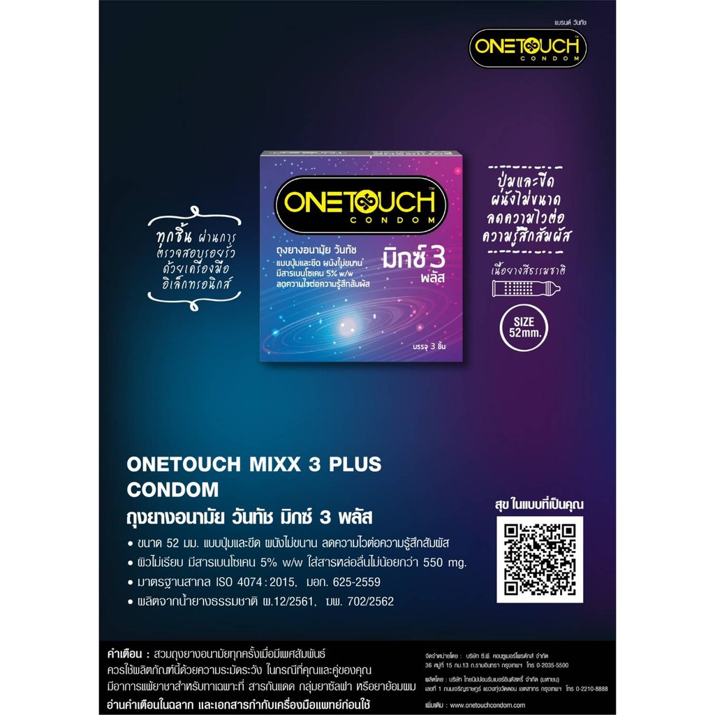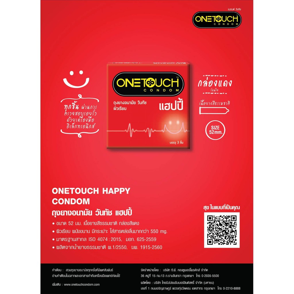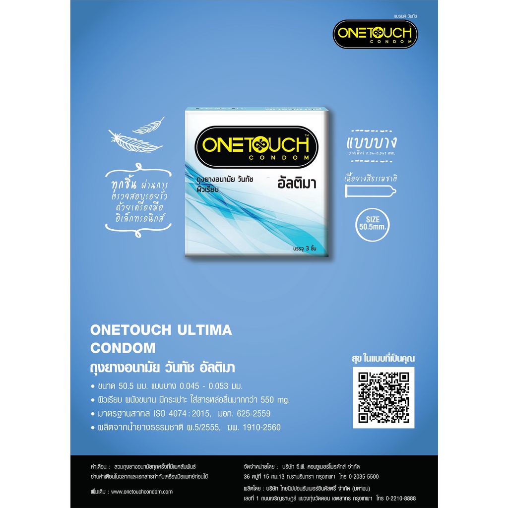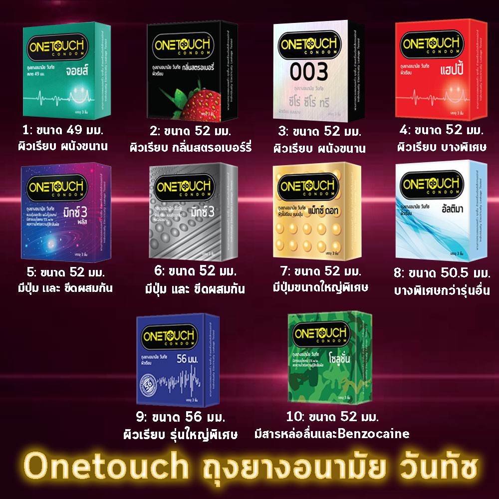 ของแท้!! ไม่ระบุชื่อสินค้า!! ONETOUCH Condom ถุงยางอนามัย วันทัช มีหลายขนาด 49-56 มม. ถุงยาง กล่องละ 3 ชิ้น