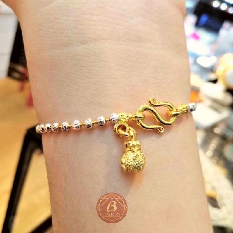 ข้อมือสองกษัตริย์ หุ้มทองคำขาว ห้อยถุงทองเรียกทรัพย์