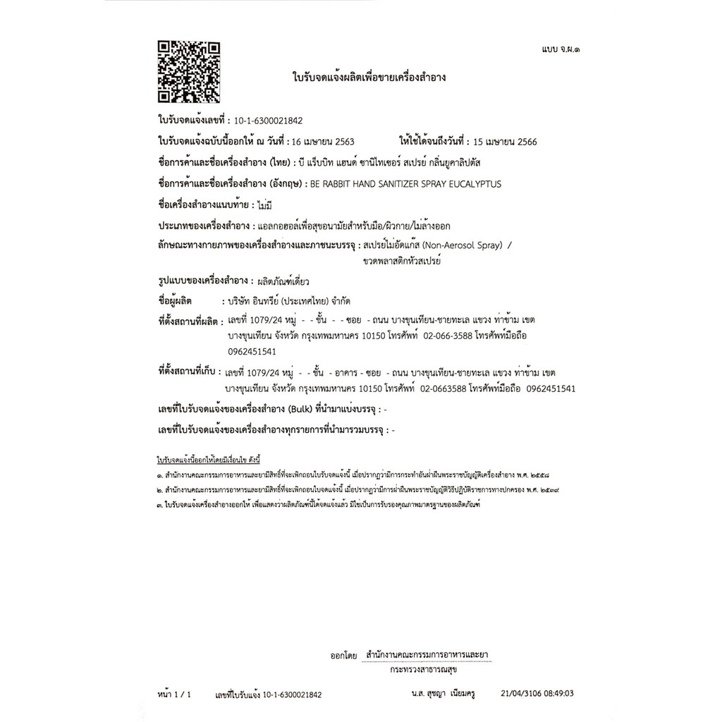 สเปรย์ แอลกอฮอล์ 75% (ไม่ขม)ขนาด 1000 ml / กลิ่น ยูคาลิปตัส / Food Grade