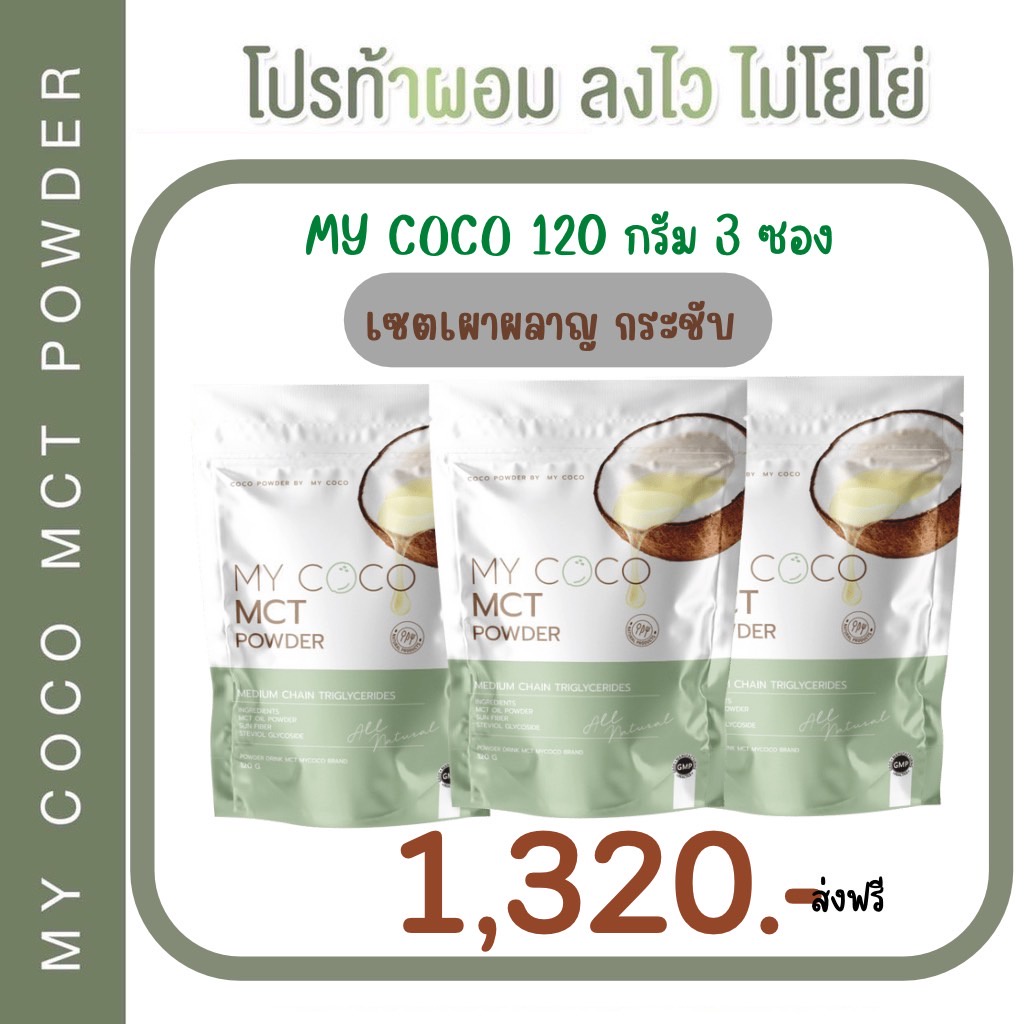 ส่งฟรี+ของแถม My coco มายโคโค่ my coco mct ลดน้ำหนัก ลดไขมัน ช่วยระบบขับถ่าย ดีท็อกซ์ ลำไส้ แก้ท้องผูก ผงมะพร้าว คุมหิว