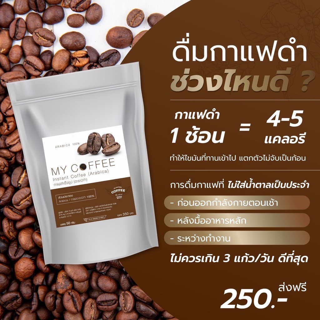 กาแฟคั่วบด Arabica 100% คั่วไฟกลาง 50 กรัม กาแฟดำ ลดน้ำหนัก คุมหิว 6-8 ชั่วโมง ผสม แอลคาร์นิทีน กระบองเพชร