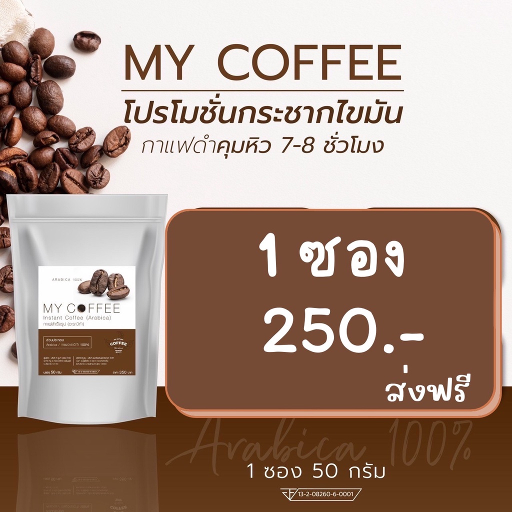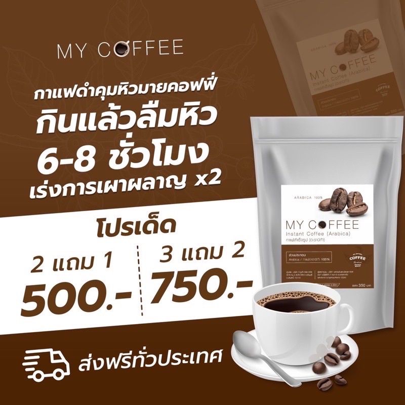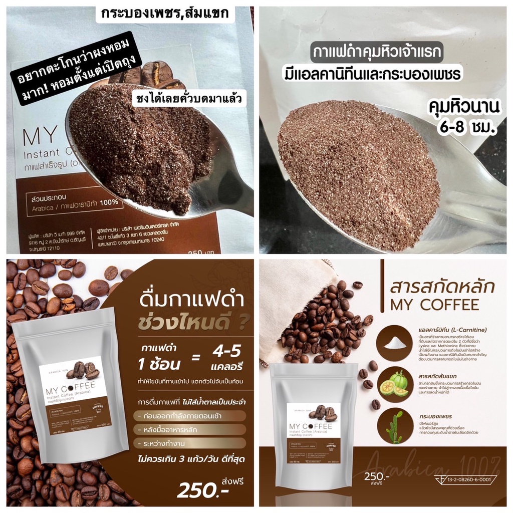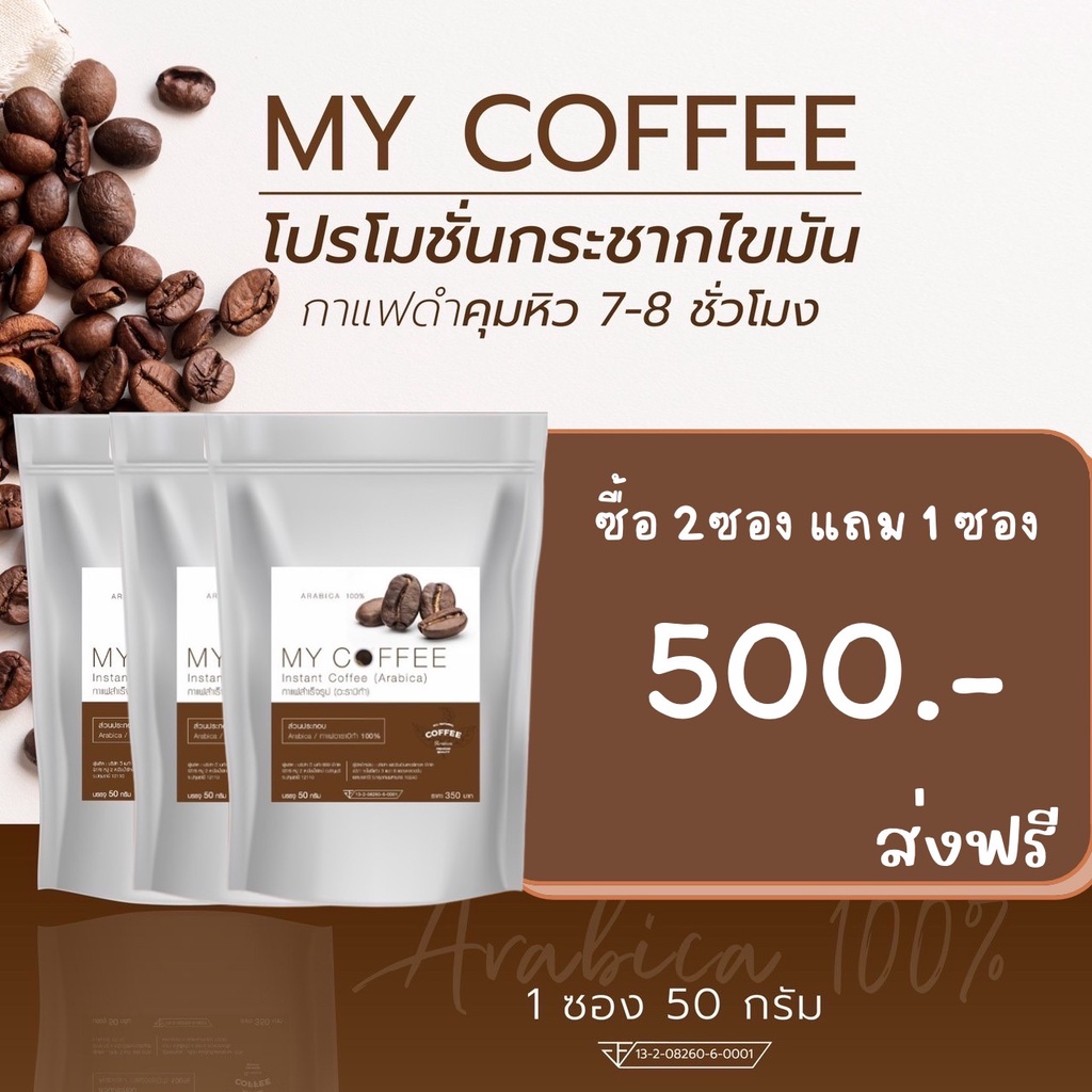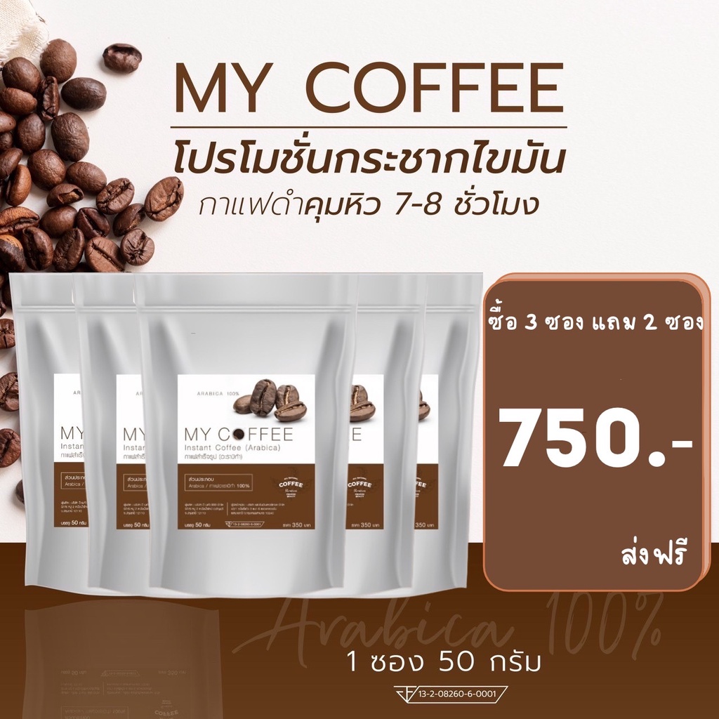 กาแฟคั่วบด Arabica 100% กาแฟดำคุมหิว my coffee คั่วไฟกลาง กาแฟดำ ลดน้ำหนัก คุมหิว อิ่มนาน 6-8 ชั่วโมง ผสม แอลคาร์นิทีน