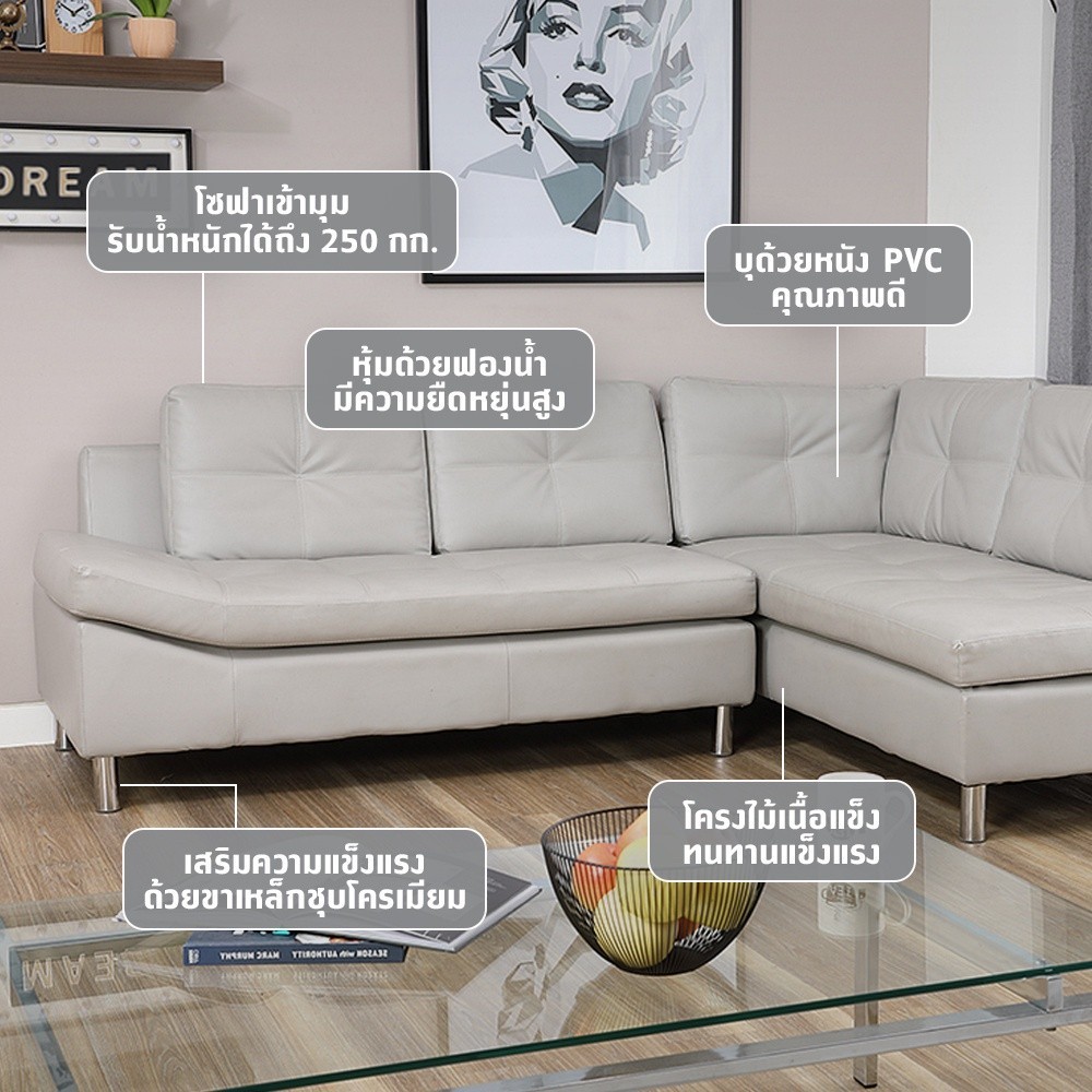 INDEX LIVING MALL โซฟาหนังสังเคราะห์ L-Shape รุ่น โอวิร่า - สีเทา,สีดำและสีน้ำตาล มีให้เลือก ด้านซ้ายและด้านขวา