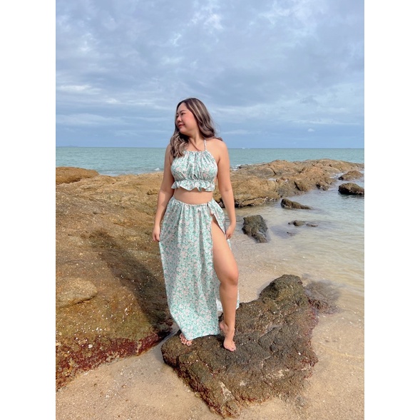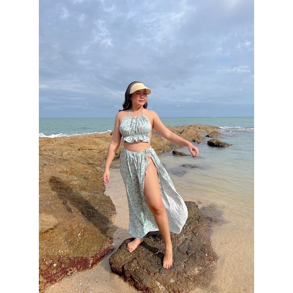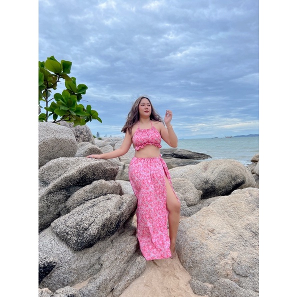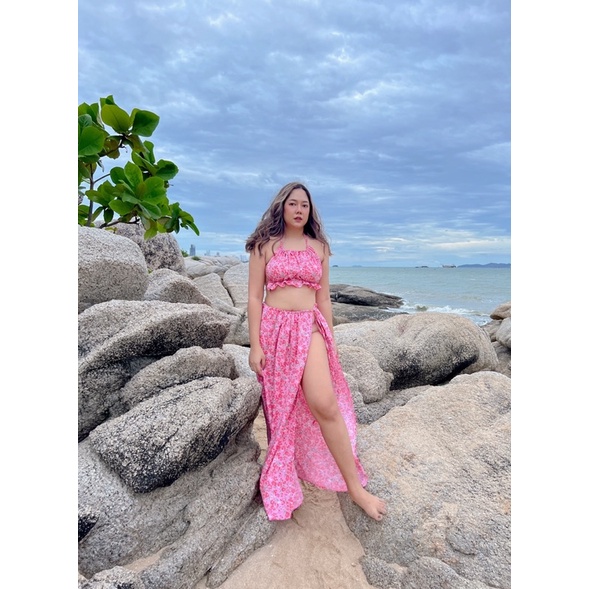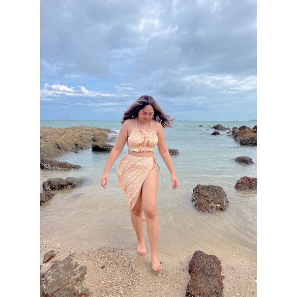 บิกินี่ ชุดเซทไปทะเลสาวอวบ 3 ชิ้น เสื้อ กกน กระโปรงยาว แซ่บมาก กระโปรงแหวกสูง ผูกได้ตามรอบเอว สาวอวบใส่ได้