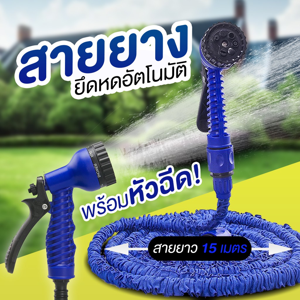 🔥พร้อมส่ง🔥สายยางยึดหดอัตโนมัติ สายยาง พร้อมหัวฉีด ปรับระดับได้