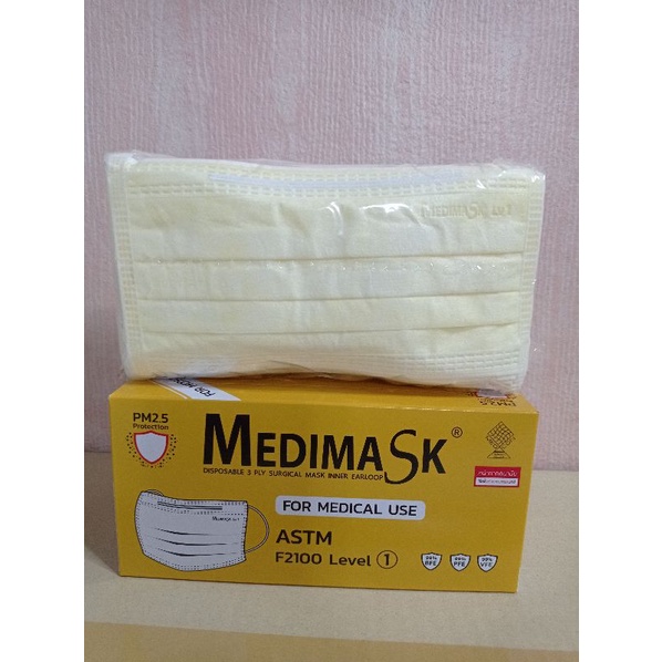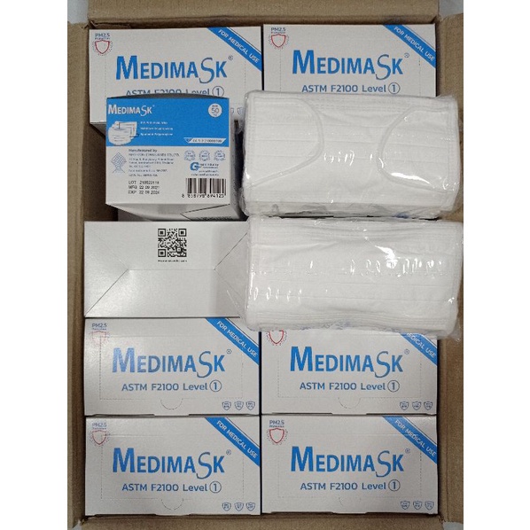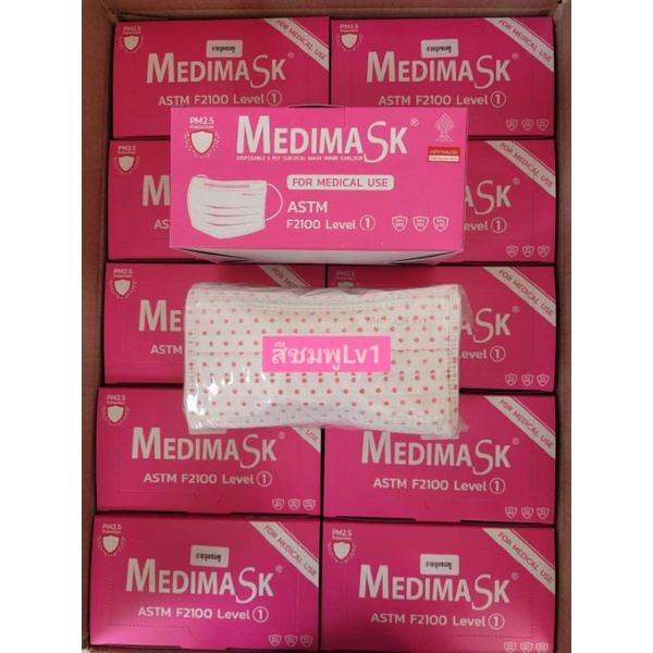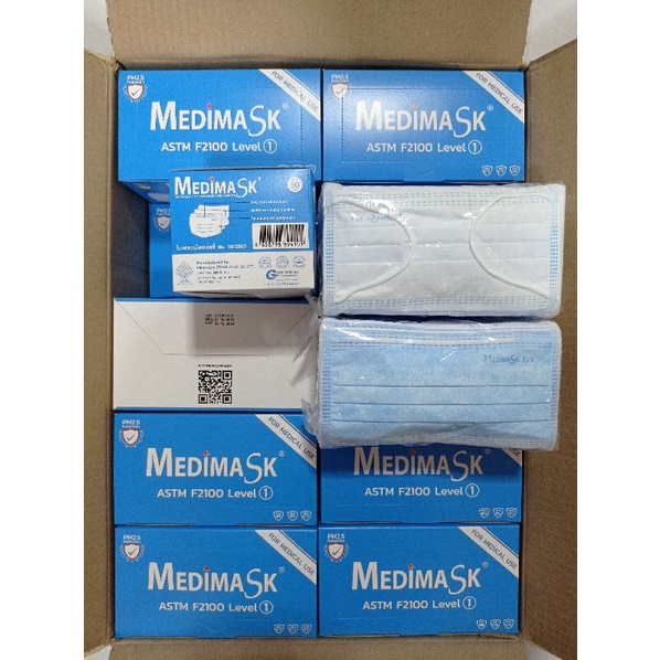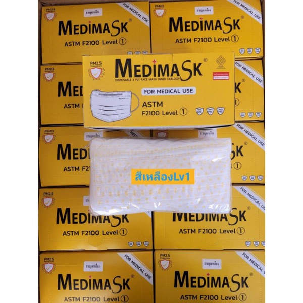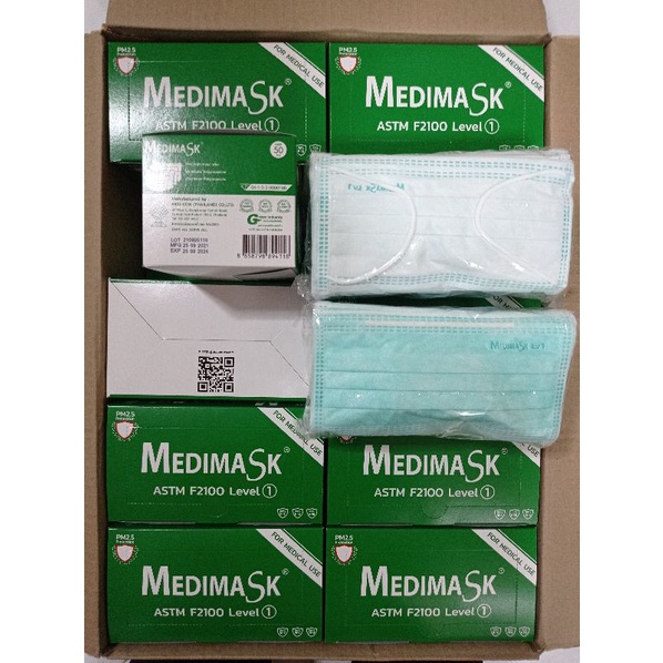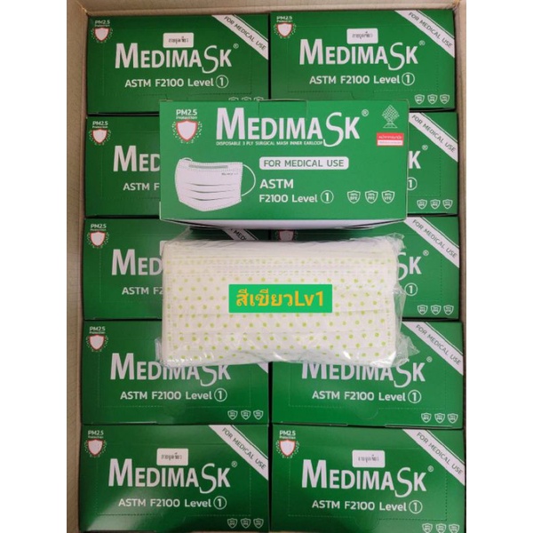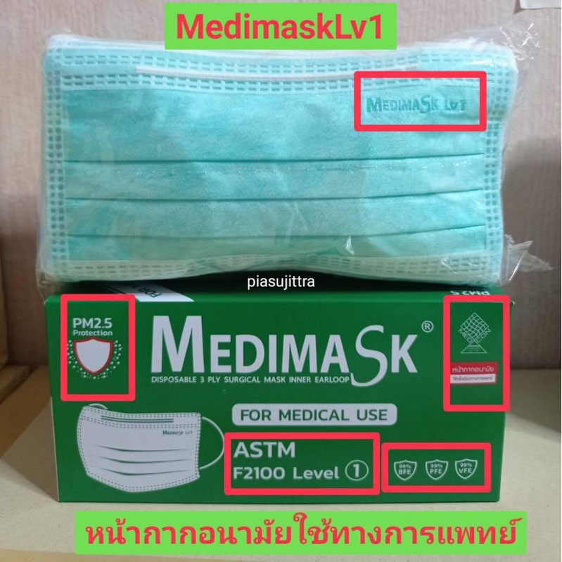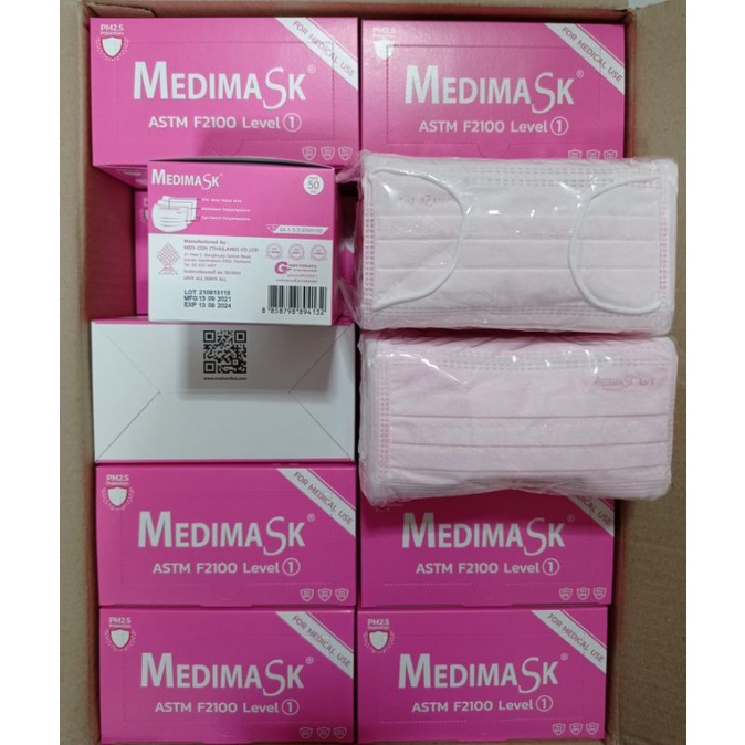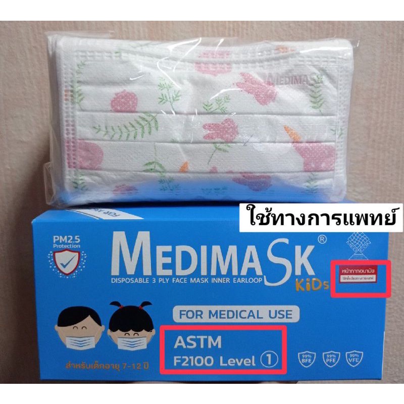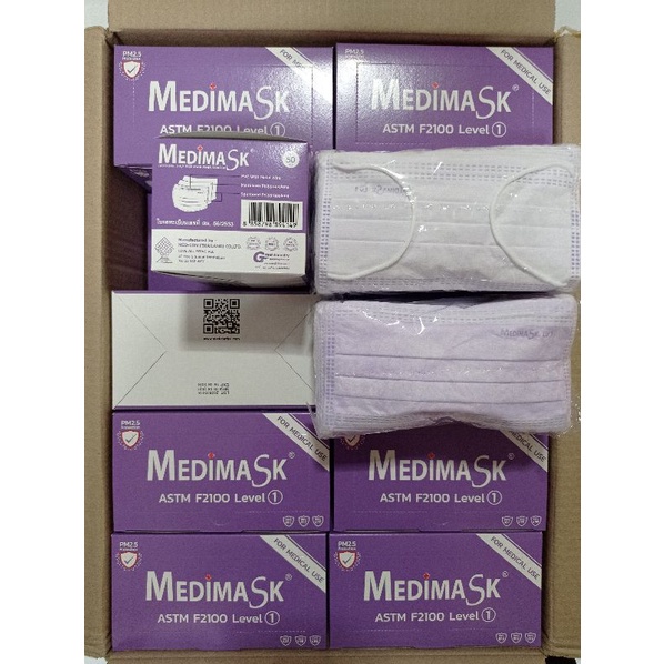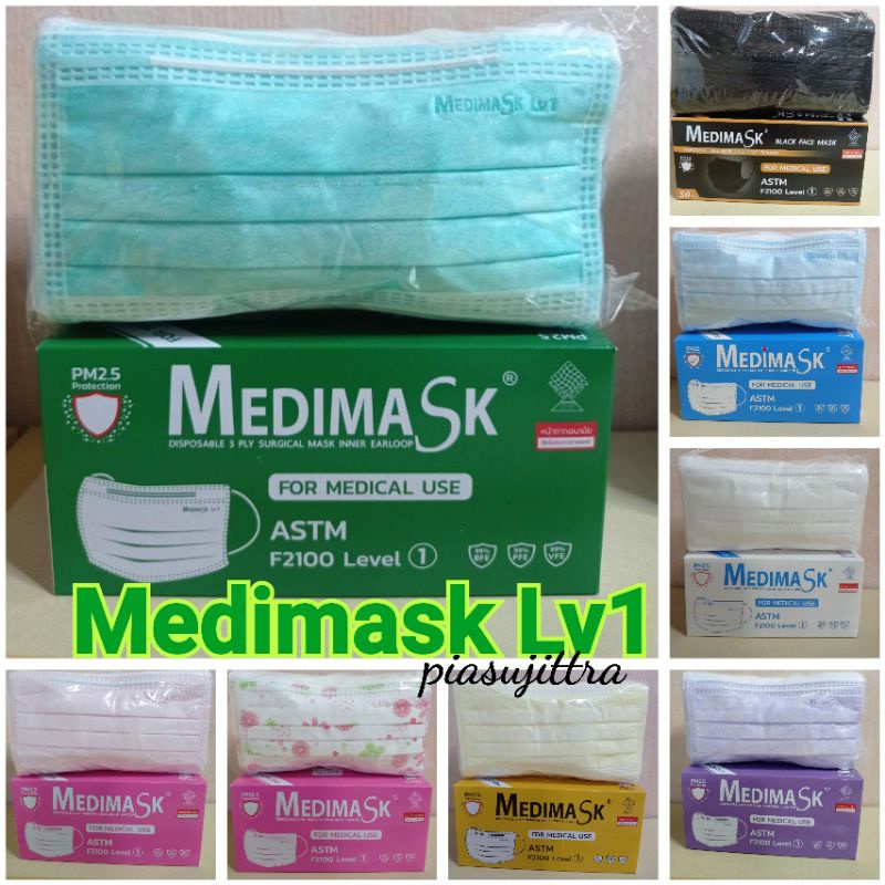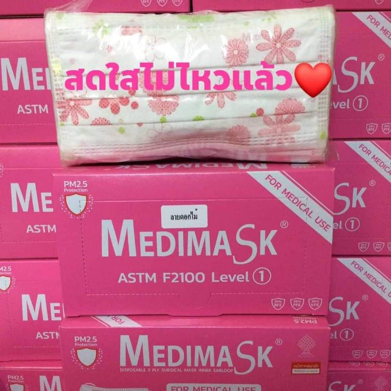 🚛ส่งด่วน🚛Medimask เมดดิ แมสก์ หนา 3 ชั้น 1 กล่อง 50 ชิ้น หลากหลายสี สีเขียว ฟ้า ขาว ชมพู ดำ ม่วง