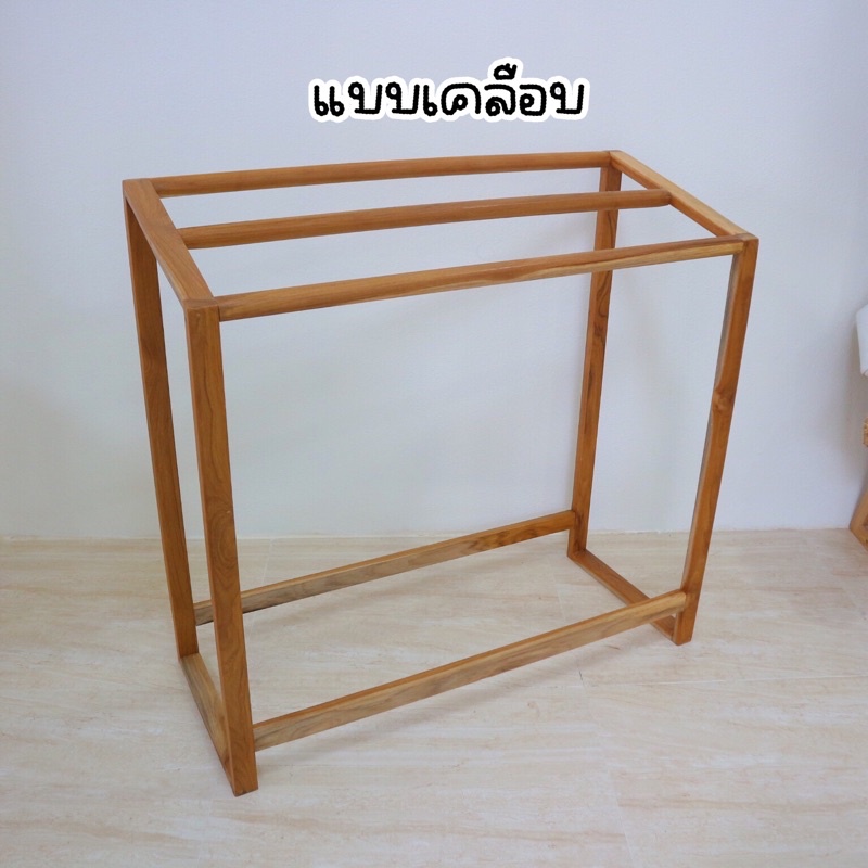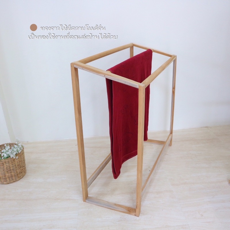 ราวตากผ้าเช็ดตัวไม้สักสไตล์มินิมอล ราวผ้าเช็ดตัว