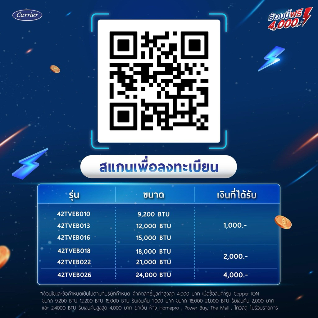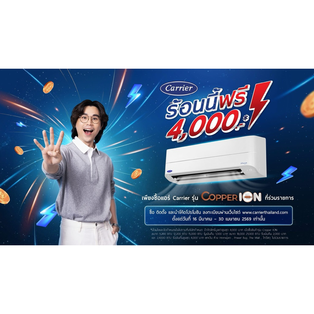 [ส่งฟรี] 🔥🔥แคเรียร์แจกค่าไฟ4000บาท🔥🔥 แอร์ใหม่ ปี 2026 แอร์ แคเรียร์ Carrier เครื่องปรับอากาศ อินเวอร์ทเตอร์ COPPER ION