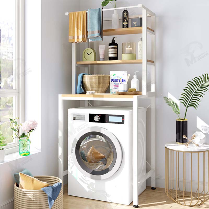 [สไตล์มินิมอล] ชั้นวางของในห้องน้ำ ชั้นวางของไม้อัด คร่อมชักโครก คร่อมเครื่องชักผ้า แบบ2เเละ3ชั้น โครงเหล็ก พร้อมส่ง FG