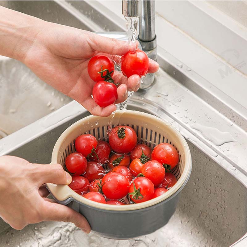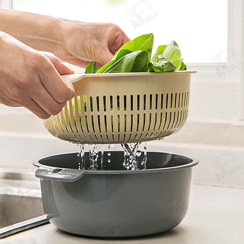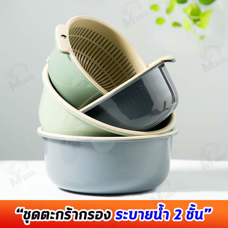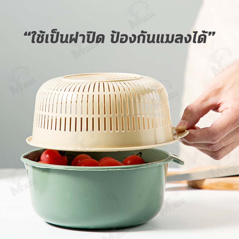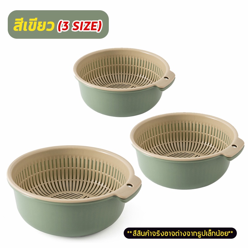 [ 2in1 ] ชุดตระกร้ากรอง ตระกร้าล้างผัก กะละมังล้างผักผลไม้ ชามล้างผลไม้ พร้อมตะกร้า2ชั้น3ขนาด พลาสติก พร้อมส่ง OA