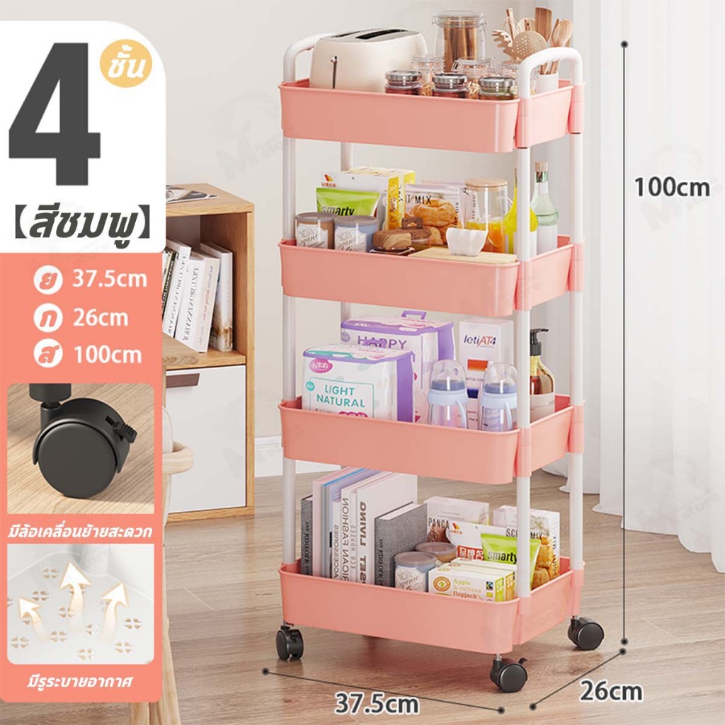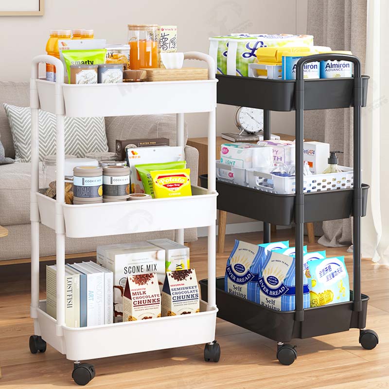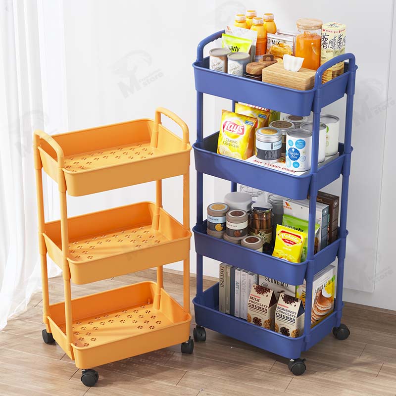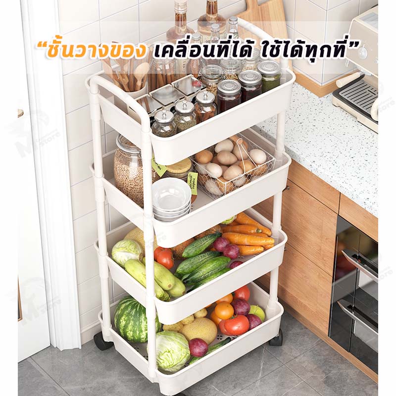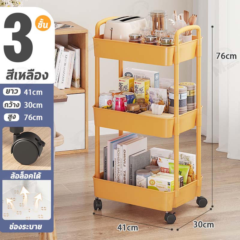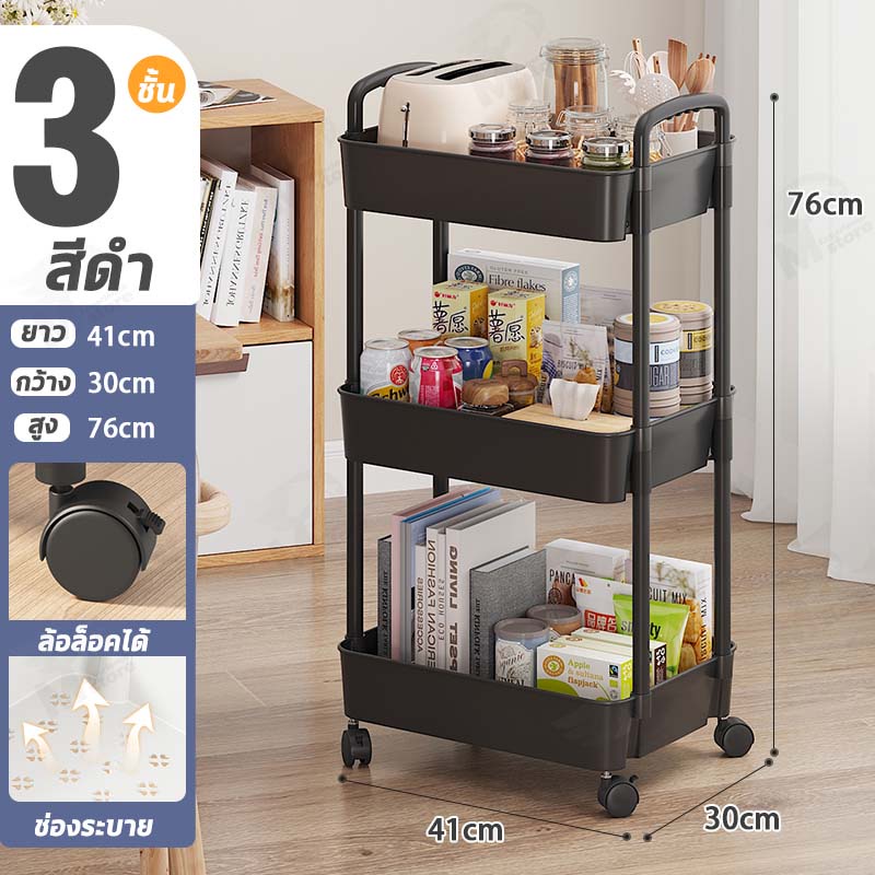 [พร้อมล้อ] ชั้นวางของพลาสติกมาพร้อมกับล้อ+ที่จับ รถเข็นเก็บของเคลื่อนย้ายสะดวก พร้อมส่ง!! BW