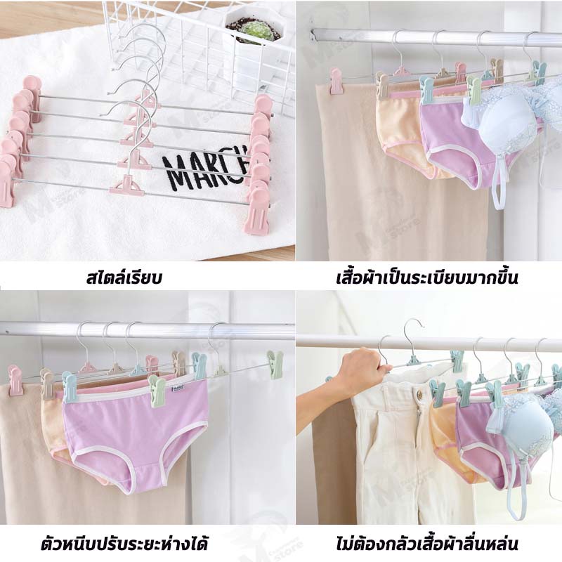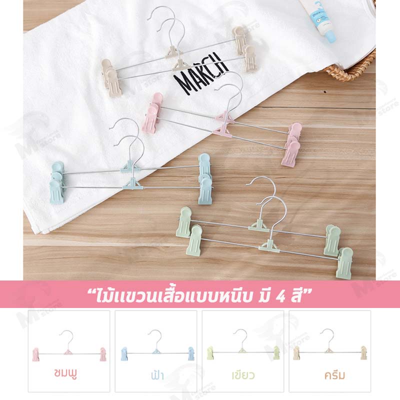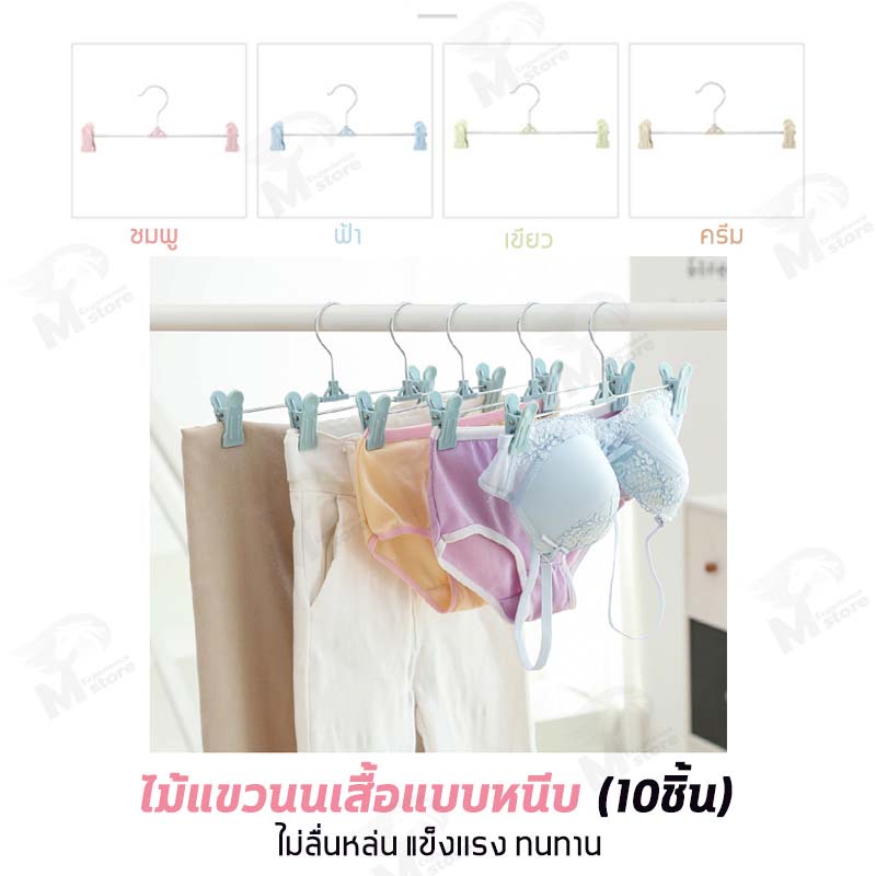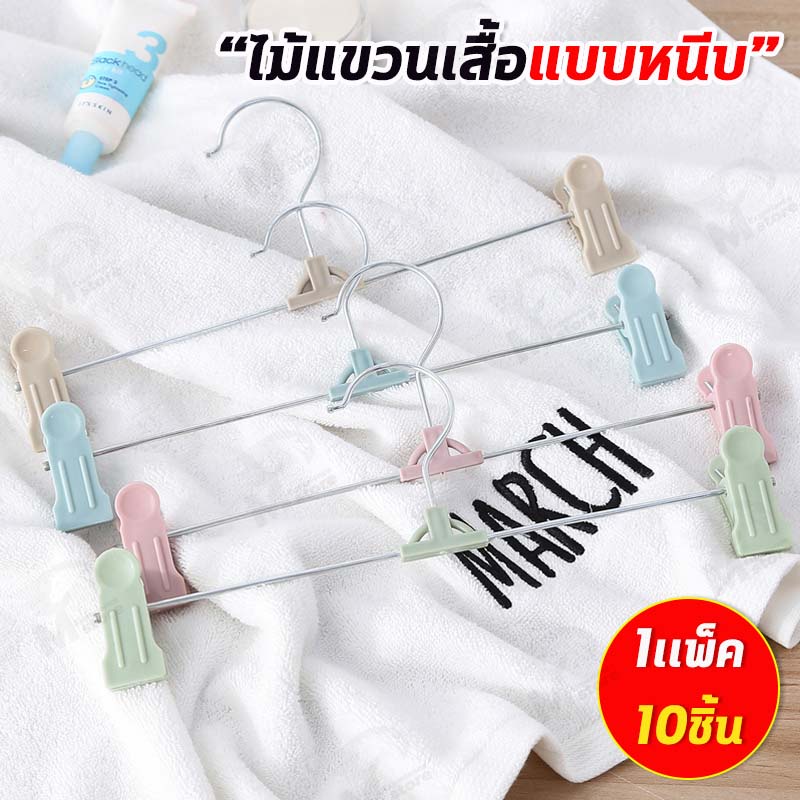 [หมุนได้ 360 ํ] ไม้แขวนเสื้อแบบหนีบ ไม้เเขวนหนีบผ้า ตัวหนีบ หนีบกางเกง กระโปรง มี4สี 1แพ็ค/10 ชิ้น พร้อมจัดส่ง SB