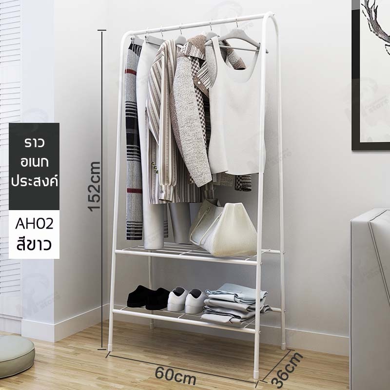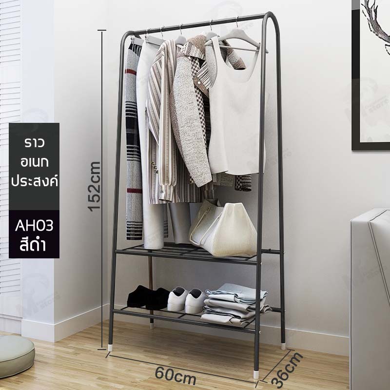 [สไตล์มินิมอล] ราวเเขวนผ้า ราวเเขวนผ้า มีชั้นวางของ วัสดุเหล็ก ใช้ในคอนโด ประหยัดพื้นที่ พร้อมส่ง AH