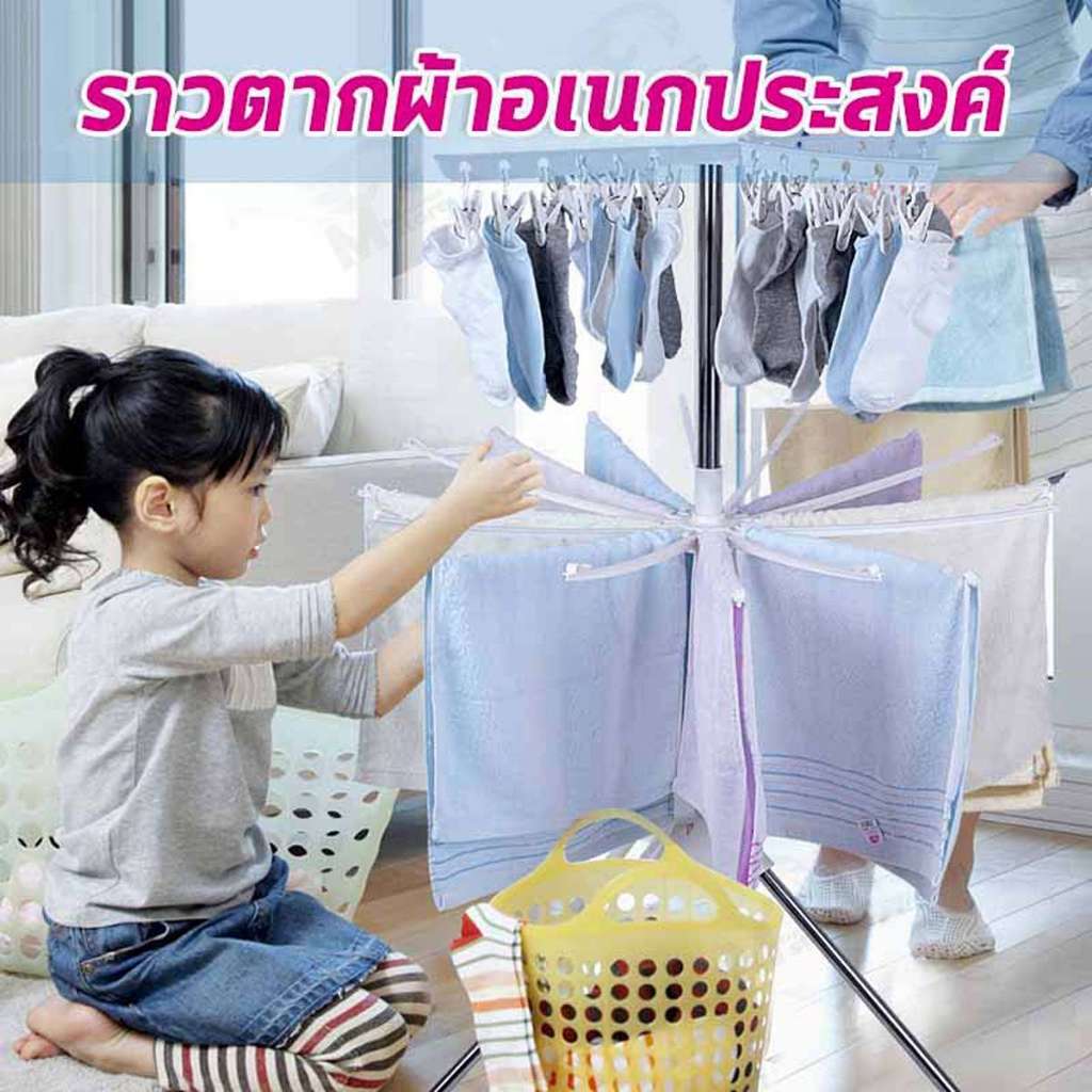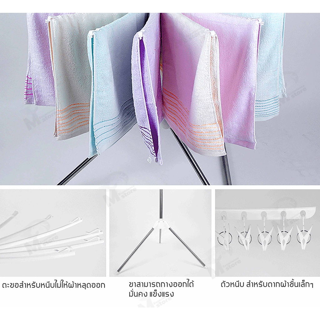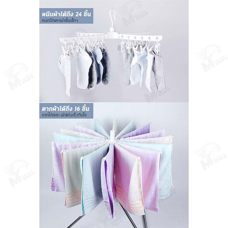 [ 3in1 ] ราวตากผ้าเหล็ก ราวเเขวนผ้า 3 ชั้น รุ่นพับเก็บได้ 24 ตัวหนีบ หมุนได้ 360 องศา ที่ตากผ้าในคอนโด พร้อมส่ง AY