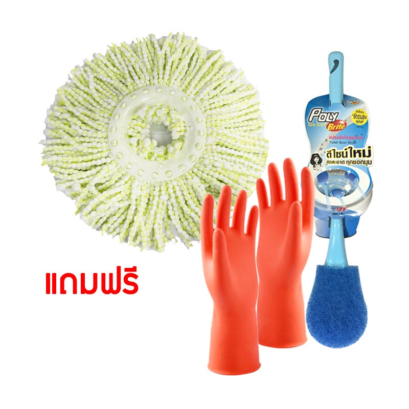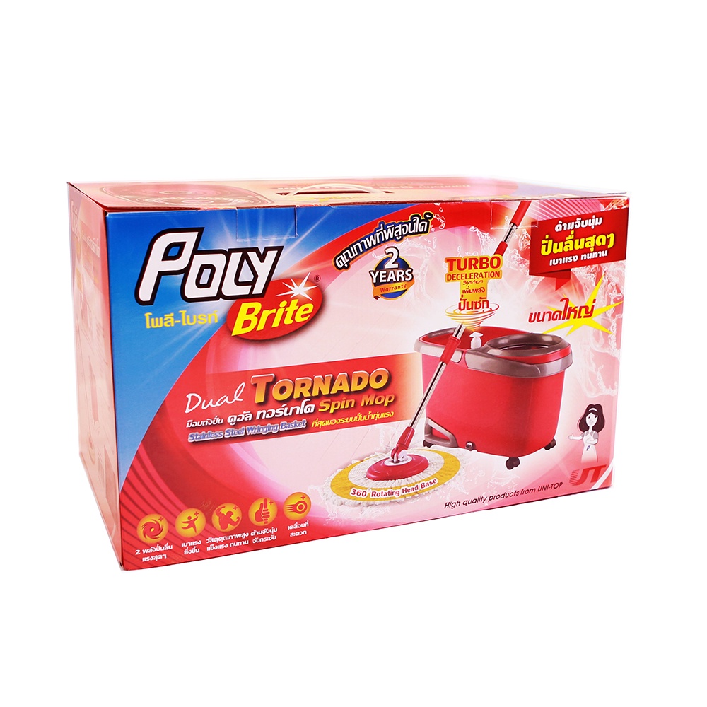 Poly-Brite โพลี-ไบรท์ ชุดถังปั่น รุ่น ดูอัลทอร์นาโด ไม้ถูพื้น พร้อมถังปั่น (แถมฟรี! รีฟิลผ้า 1 ชิ้น+ขัดโถ+ถุงมือ)