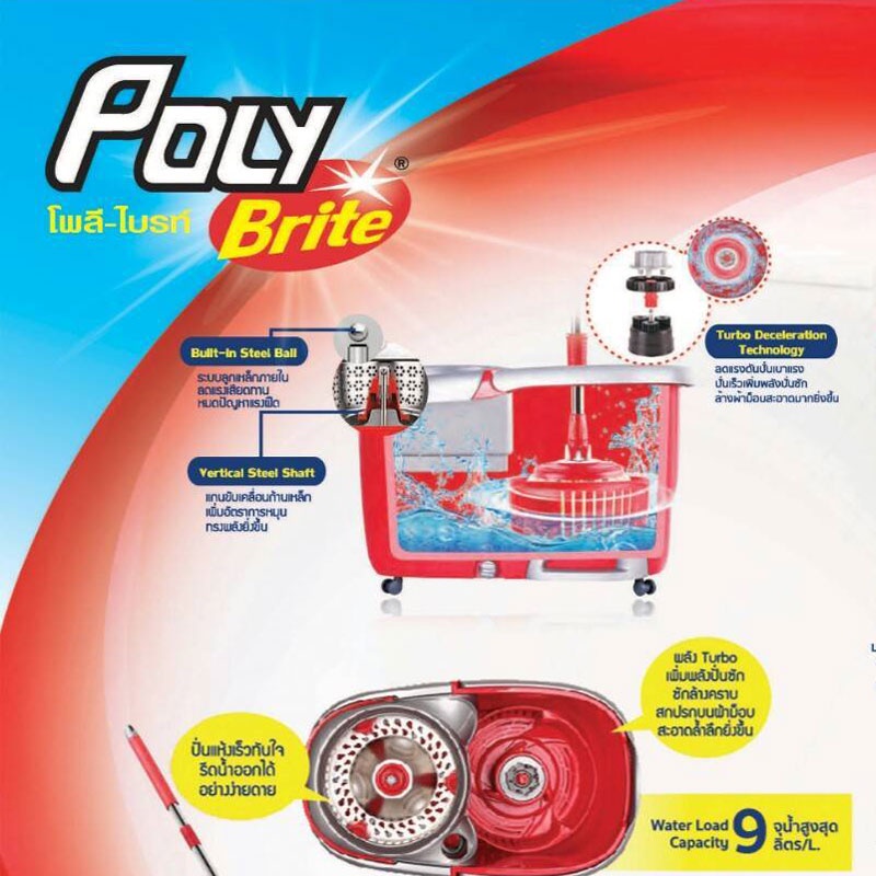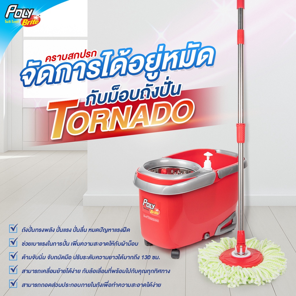 Poly-Brite โพลี-ไบรท์ ชุดถังปั่น รุ่น ดูทอร์นาโด ไม้ถูพื้น พร้อมถังปั่น (แถมฟรี! รีฟิล, แปรงขัดโถ, ถุงมือ และผ้าไมโครฯ)