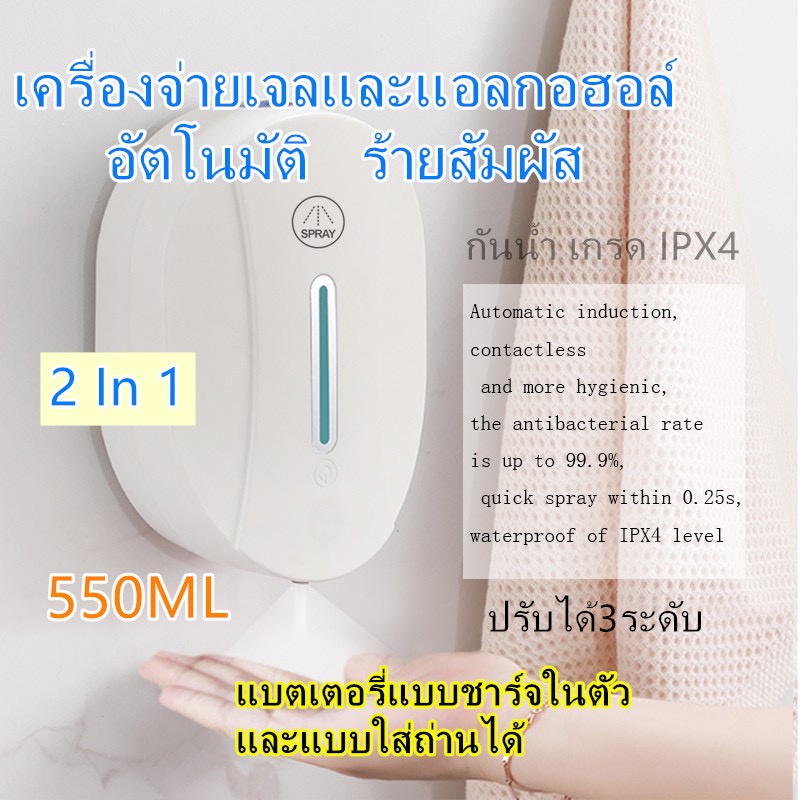 2 In 1เครื่องจ่ายสบู่เหลว/แอลกอฮอล์อัตโนมัติ ใช้ได้ทั้งเจล/สเปรย์ ติดผนัง 550ML automatic soap dispenserไม่รวมถ่าน