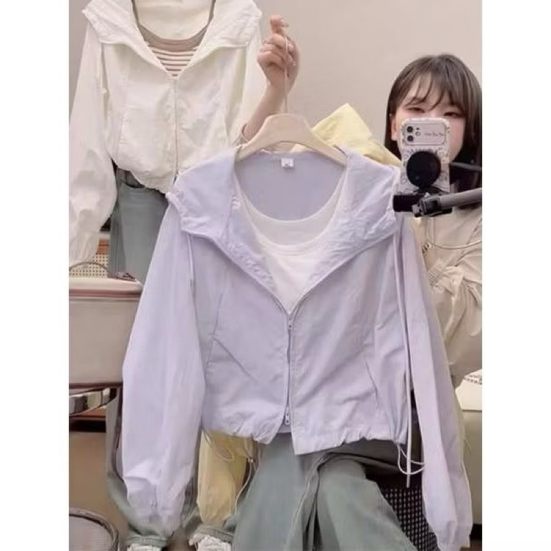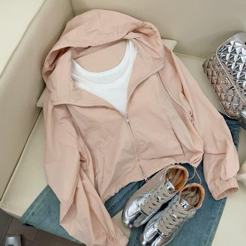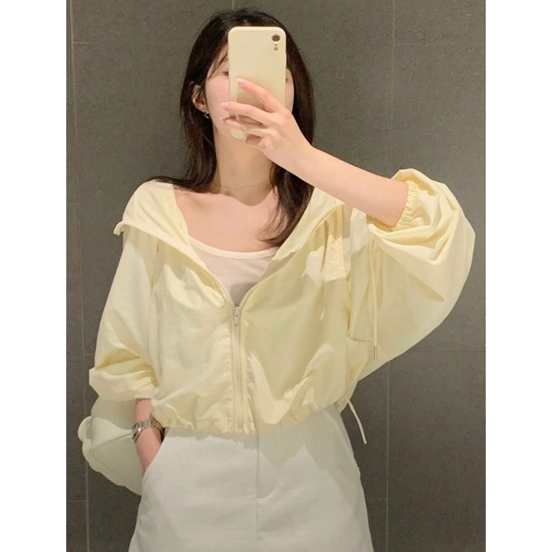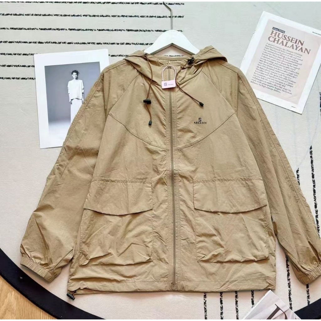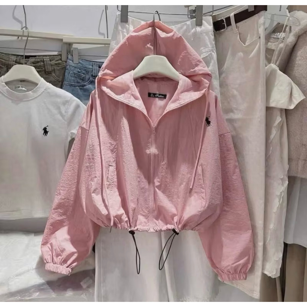 เสื้อคลุมผู้หญิง เสื้อคลุมกันแดด เสื้อคลุมผ้าร่ม แขนยาวมีฮู้ด มีกระเป๋า