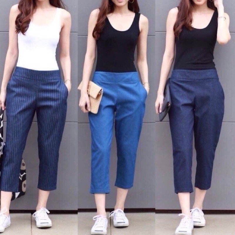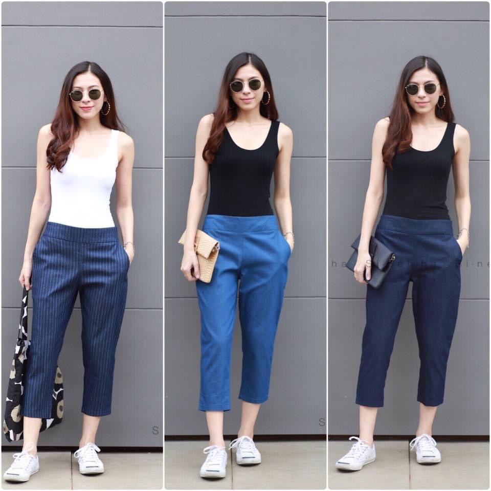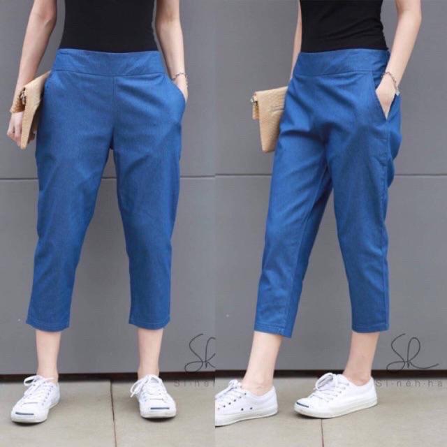 กางเกงขาเดฟ 5 ส่วนผ้ายีนส์และผ้าลินิน กางเกงห้าส่วนขาเดฟ ขาเดฟ5ส่วน