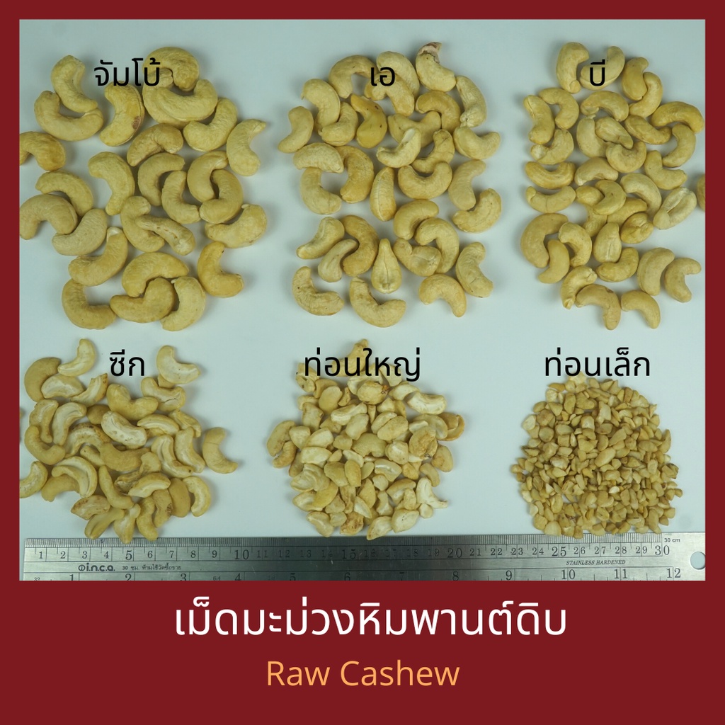 เมล็ดมะม่วงหิมพานต์ดิบจัมโบ้ เต็มเม็ด ซีก ท่อน ครบทุกขนาด Raw Cashew Nuts Jumbo Whole Split Broken