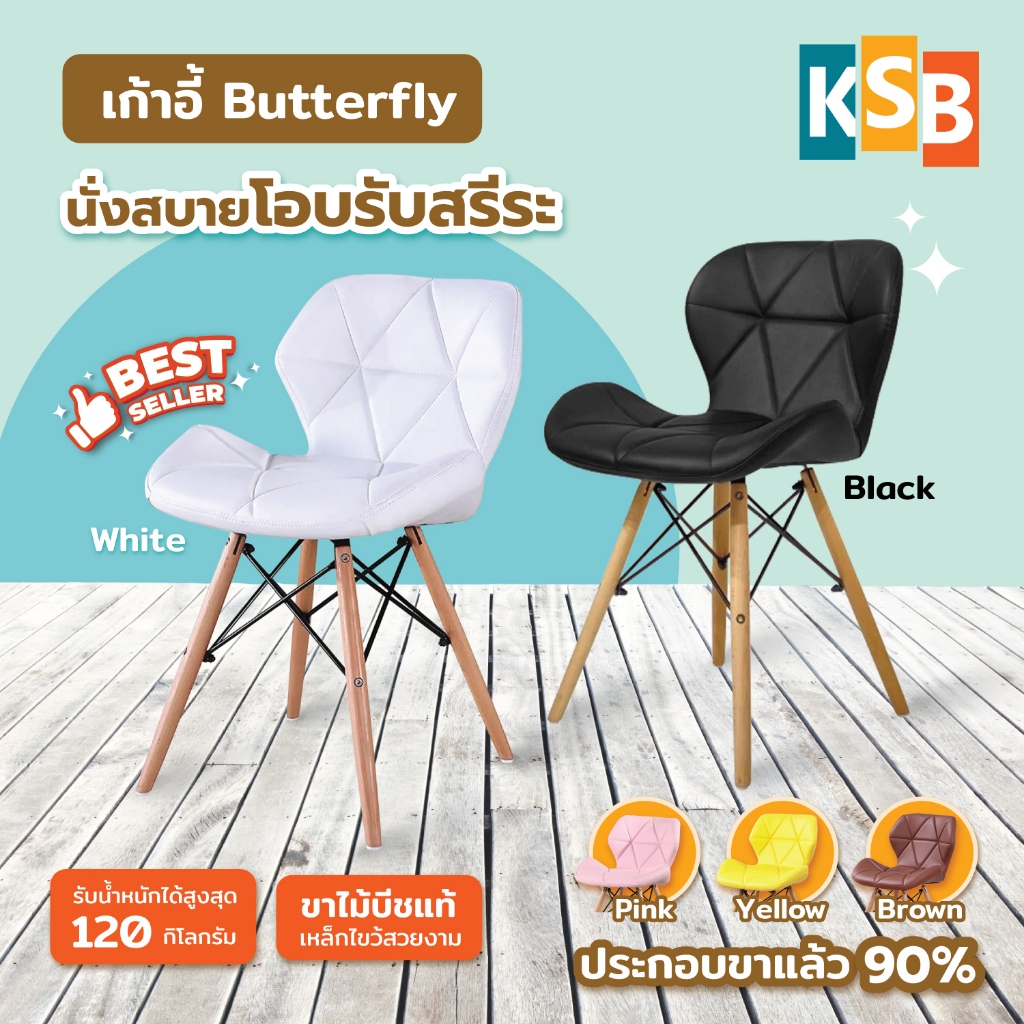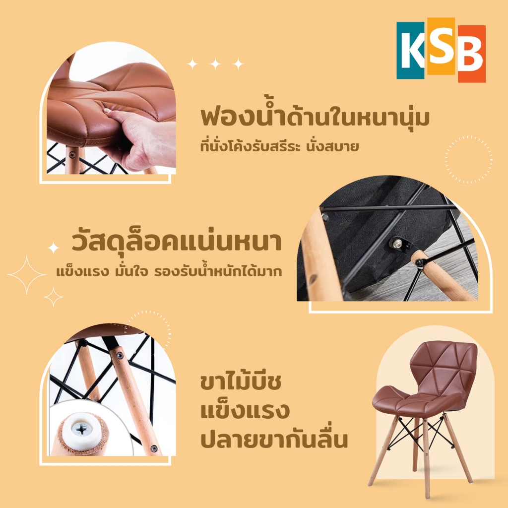 KSB เก้าอี้โมเดิร์นคาเฟ่ เบาะหนัง PU ขาไม้ เสริมเหล็ก รุ่น MC-03