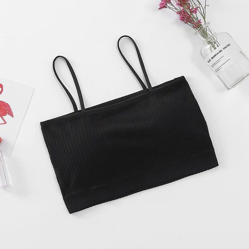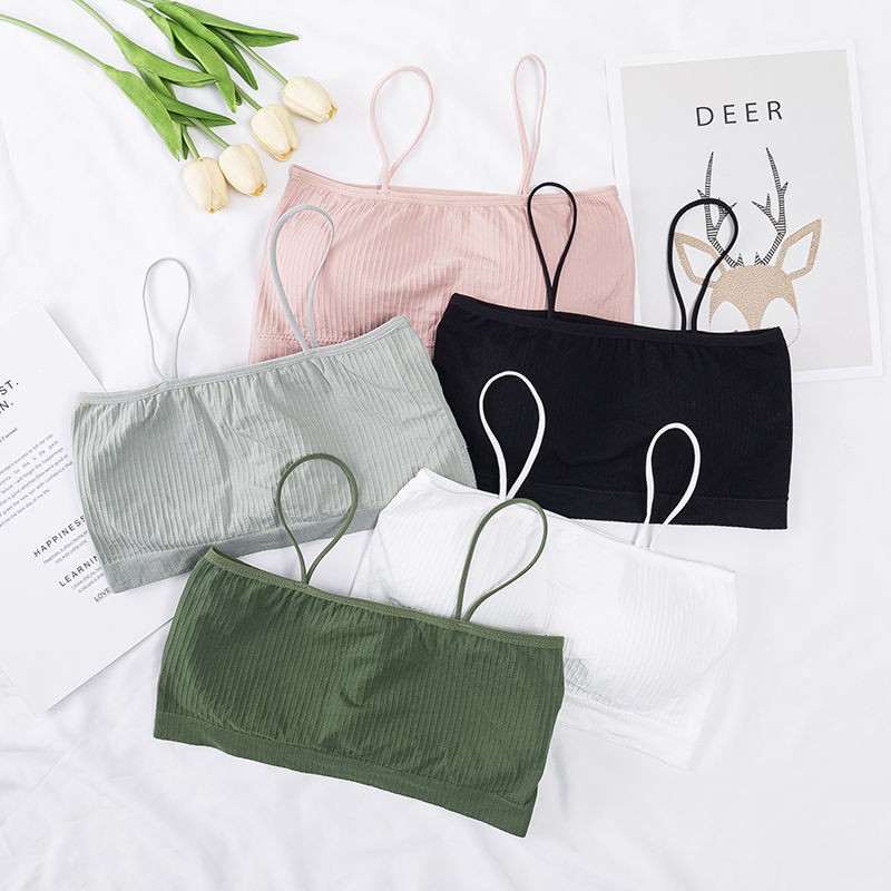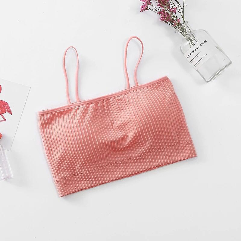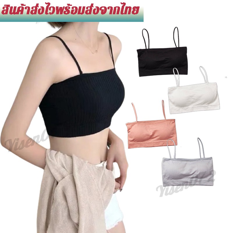 เสื้อชั้นในผู้หญิง ผ้าร่อง สายเดี่ยว ครึ่งตัว ชุดชั้นใน ฟองน้ำในตัว ใส่สบาย สายยางยืด